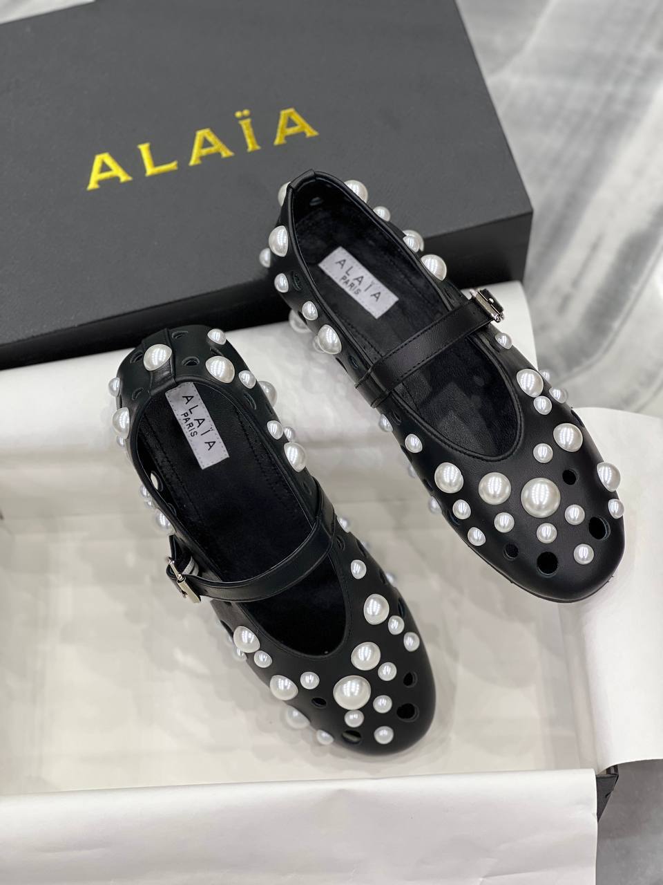 Чёрные женские балетки Alaia. Премиум одежда для женщин с элегантным стилем.