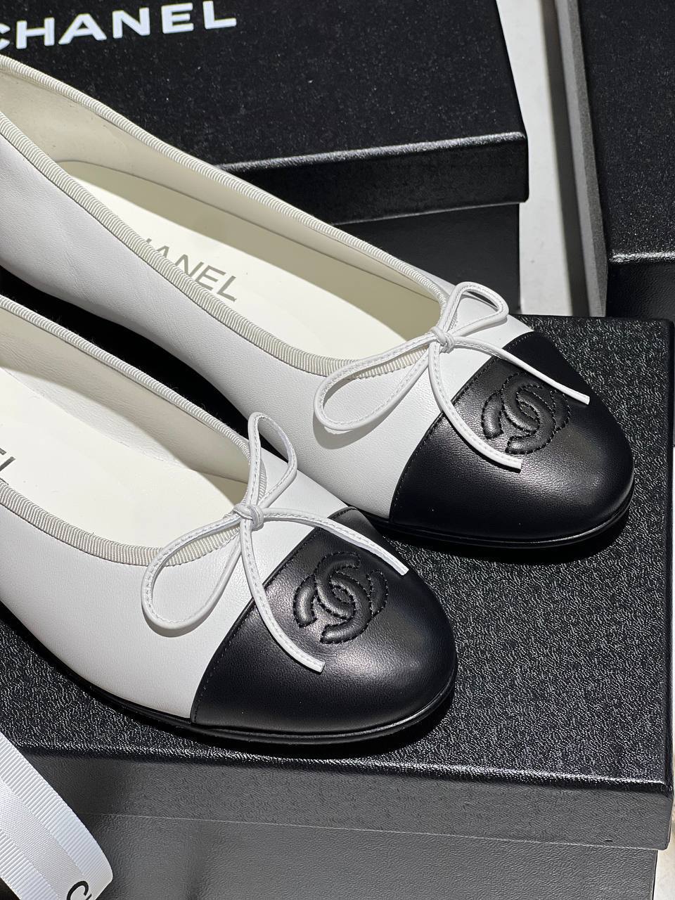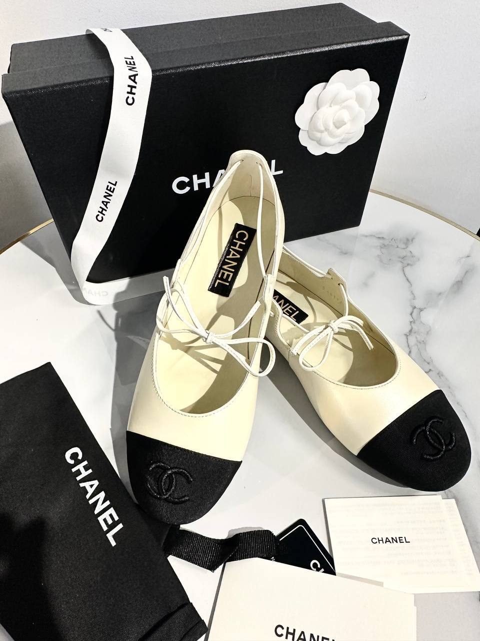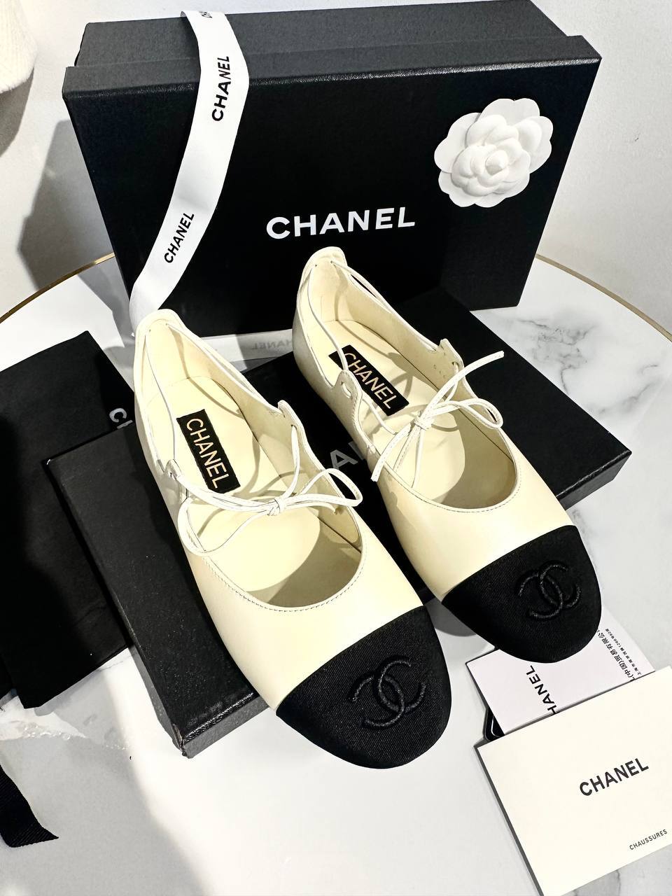 Для элегантной женщины - белая женская балетка Chanel черного цвета. Премиум качество, стиль и красота в одном.