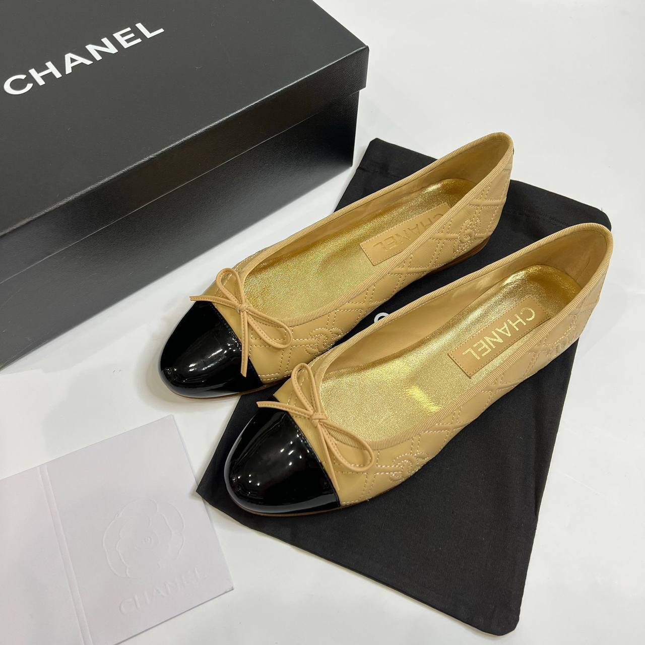 Восторг без границ: женская балетка Chanel в сочетании белый-черный-бежевый. Доставим домой, не выходя из дома!