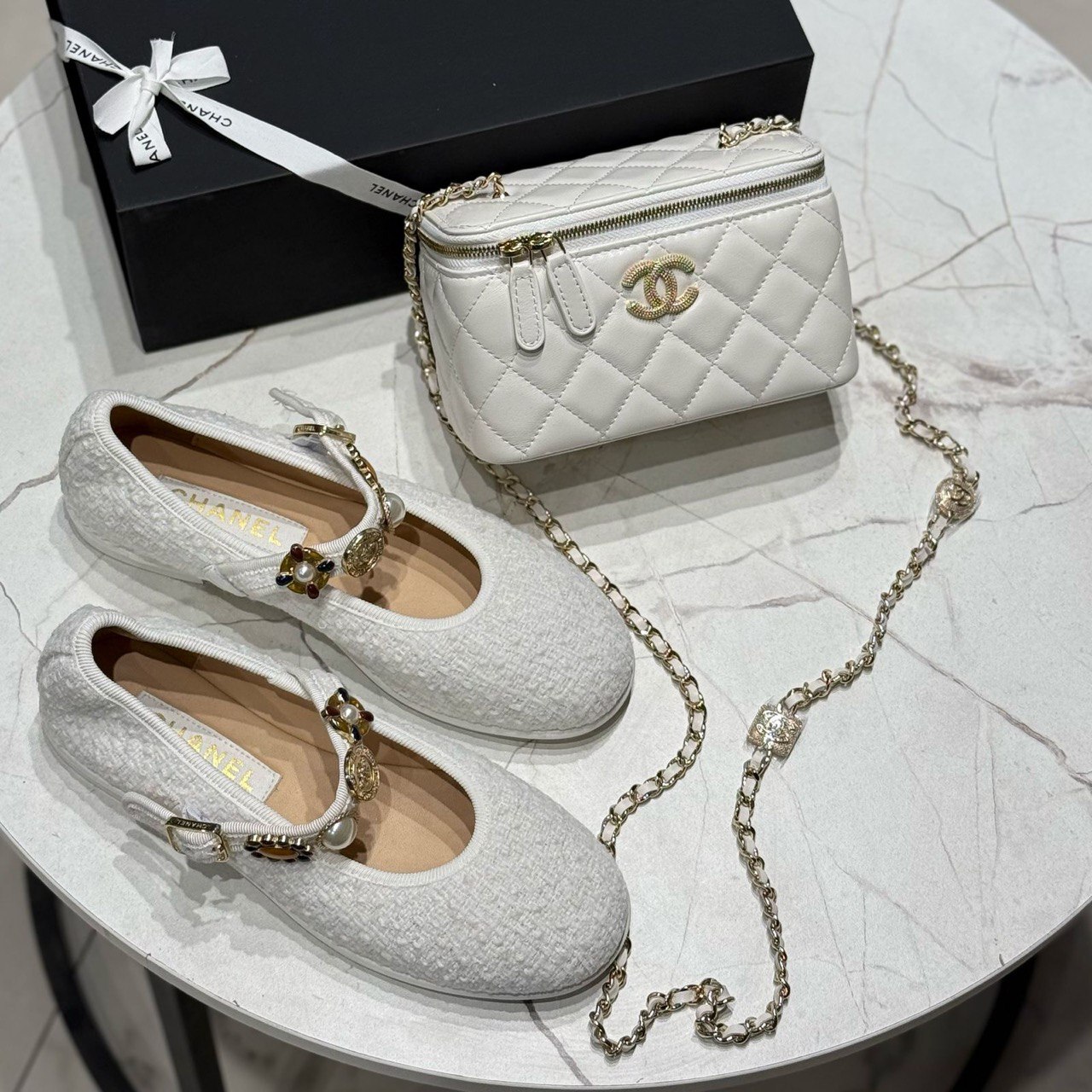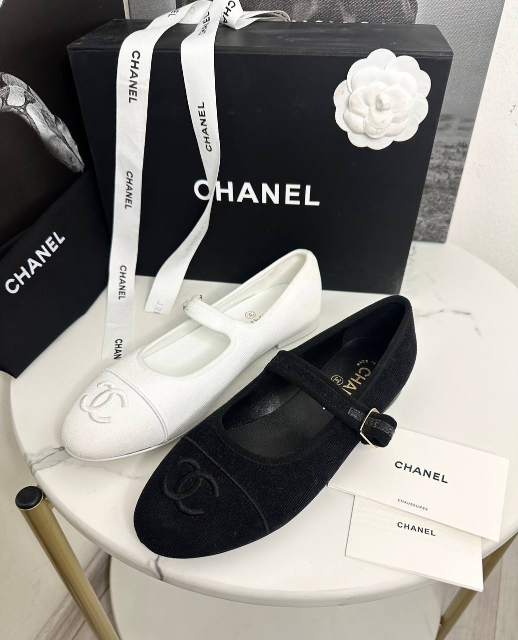 Белая женская балетка Chanel - идеальный выбор для стильной женщины, которую можно примерить в домашних условиях.
