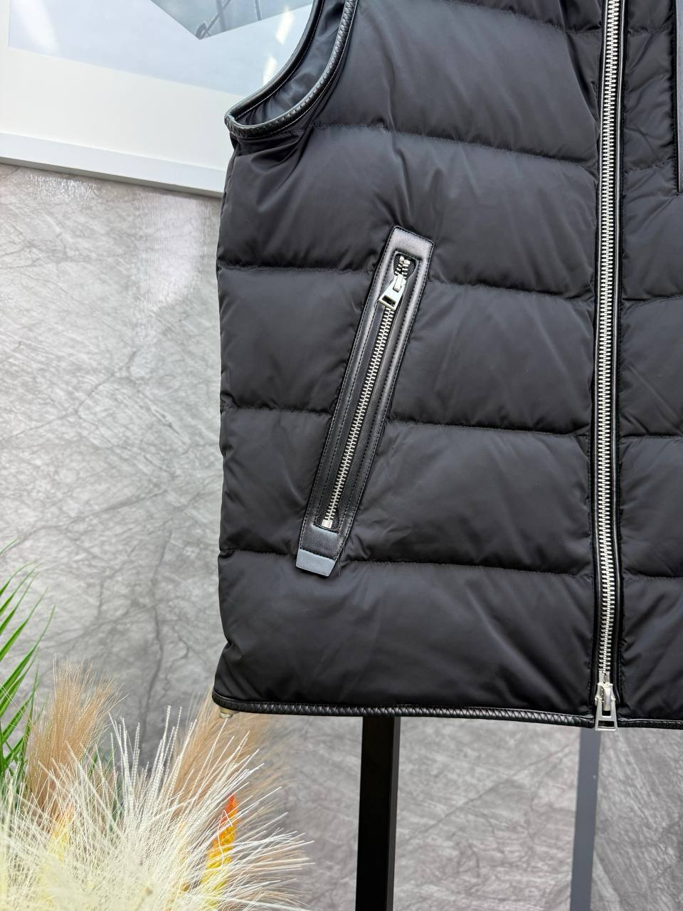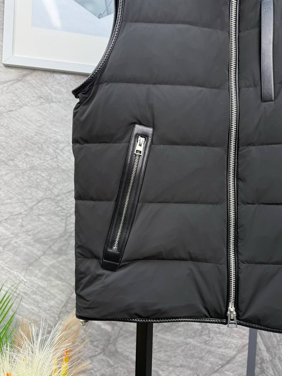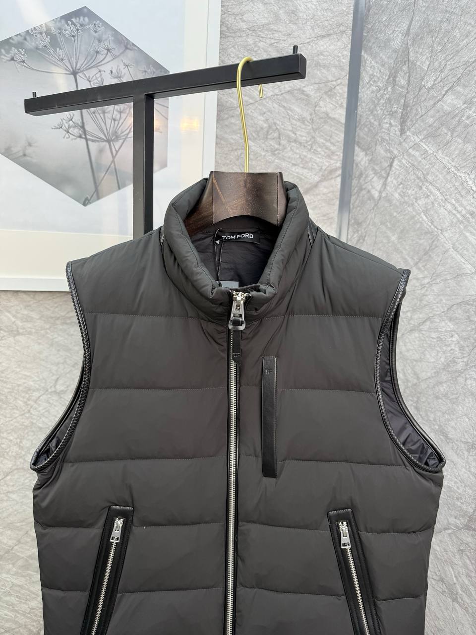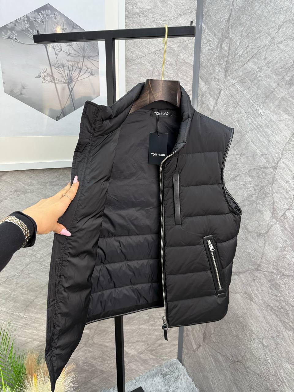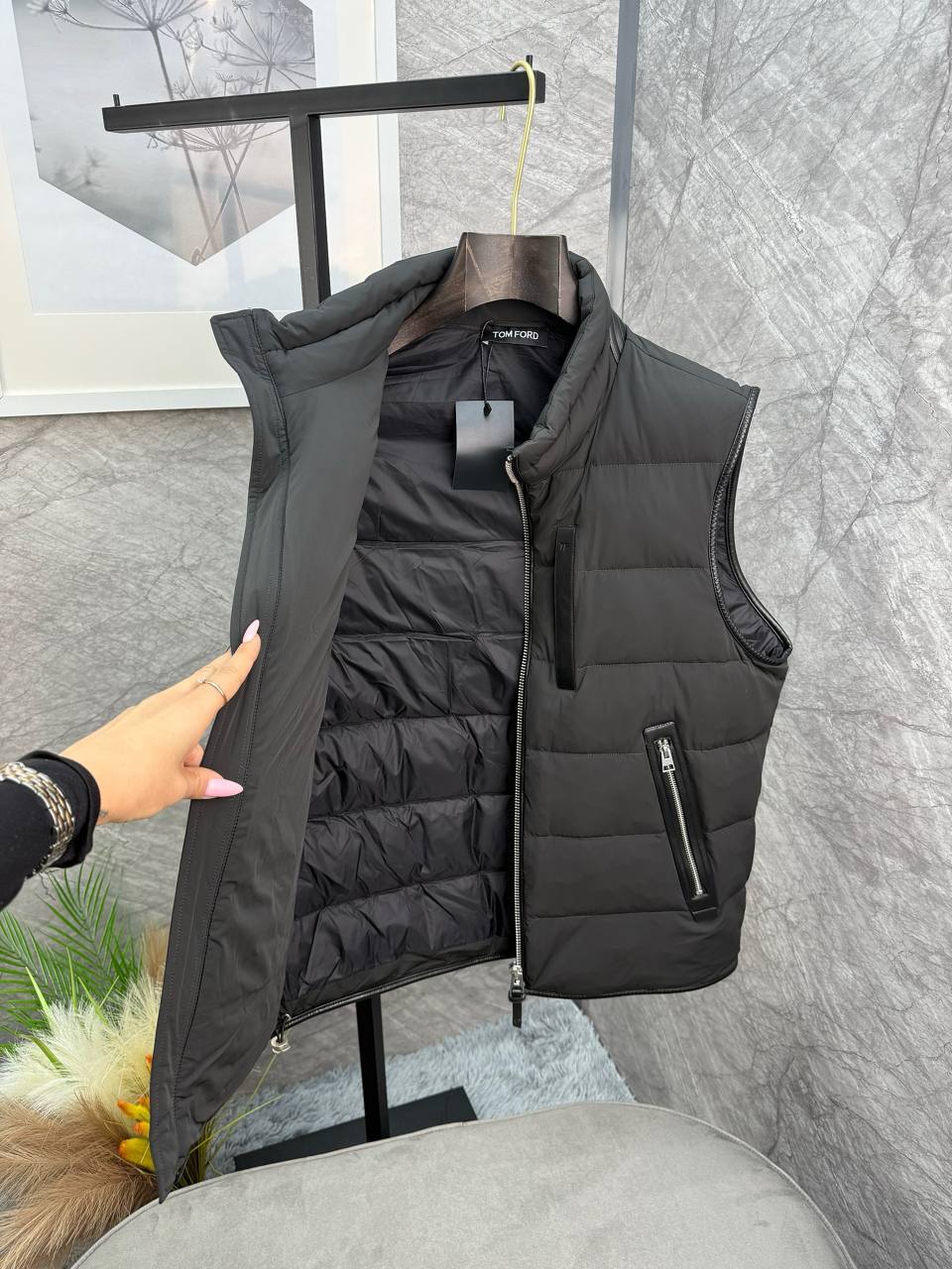 Tom Ford: Мужская безрукавка премиального качества. Классический темно-серый крой, эффект овчины и два кармана на молнии. Создайте безупречный образ с этой культовой безрукавкой.