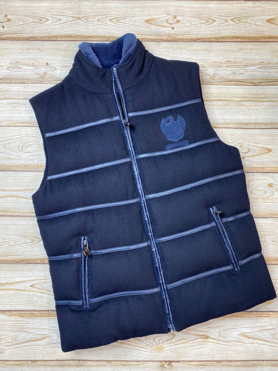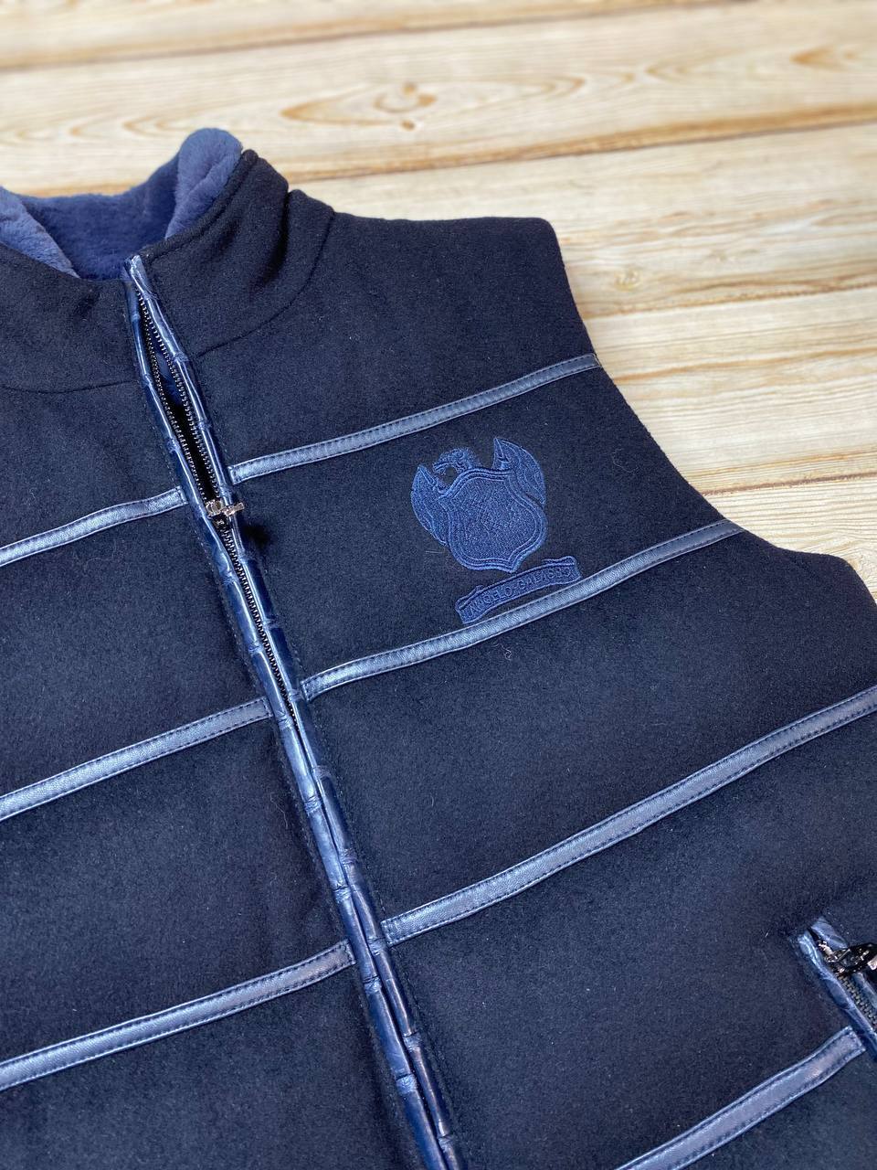 Мужская безрукавка Angelo Galasso с вставками из кожи крокодила синяя - модная одежда для стильного мужчины, созданная по высшему стандарту премиум-класса.