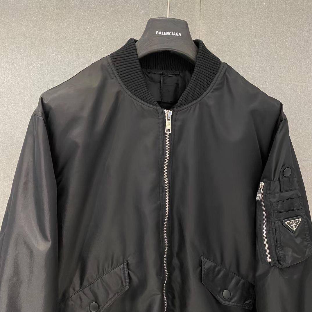 Для мужчины с чувством стиля и элегантного образа - черный бомбер Prada, гарантирующий непревзойденное сочетание модности и комфорта.