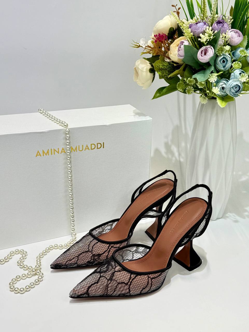 Элегантные черные босоножки Amina Muaddi для женщины - идеальный акцент на любой премиальной гардеробной.