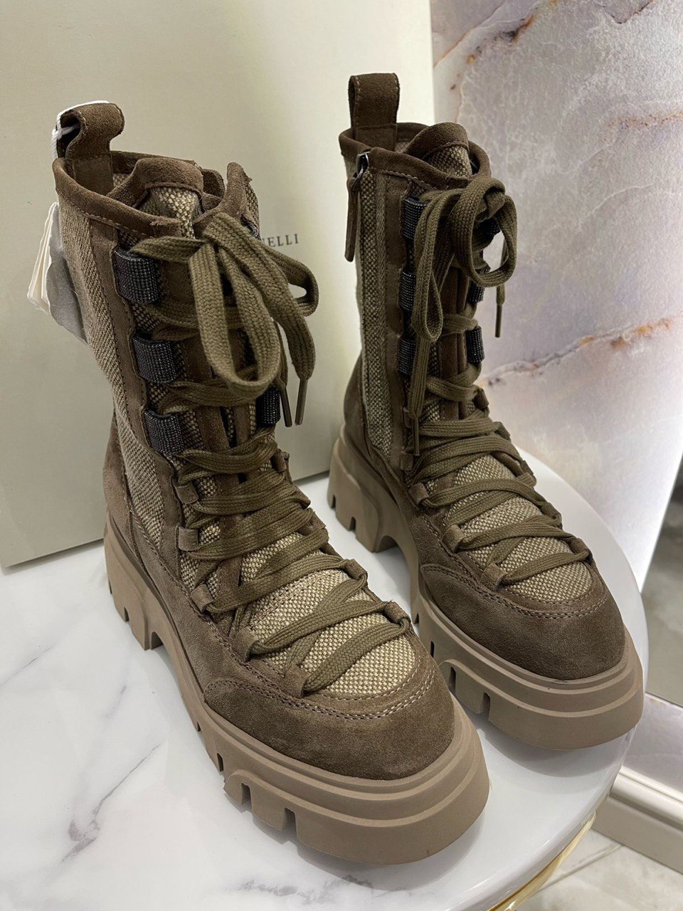 Откройте для себя роскошь Brunello Cucinelli! Коричневые ботинки с массивной подошвой – идеальный выбор для ценителей премиум-стиля. Женская Brunello Cucinelli зелёная обувь.