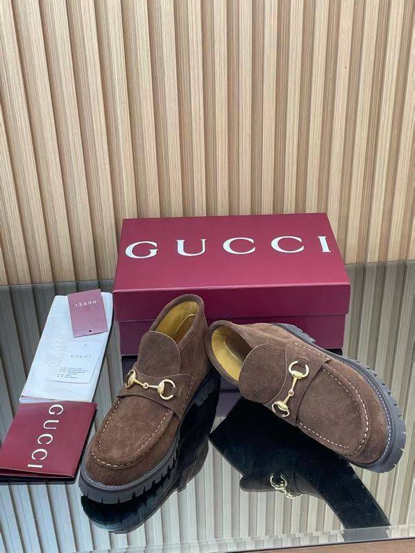 Объедините в себе комфорт и гламур с Женскими Gucci коричневыми ботинками. Массивная подошва, роскошная кожа и золотая пряжка – идеальный выбор для уверенных в себе.