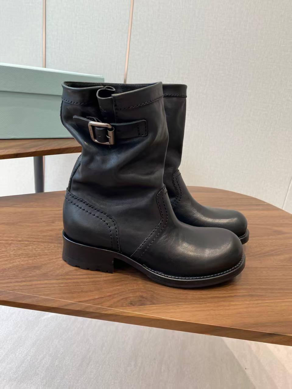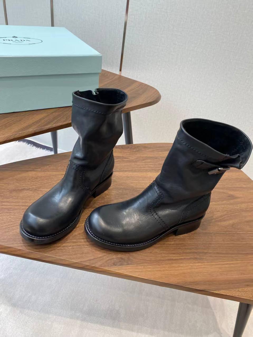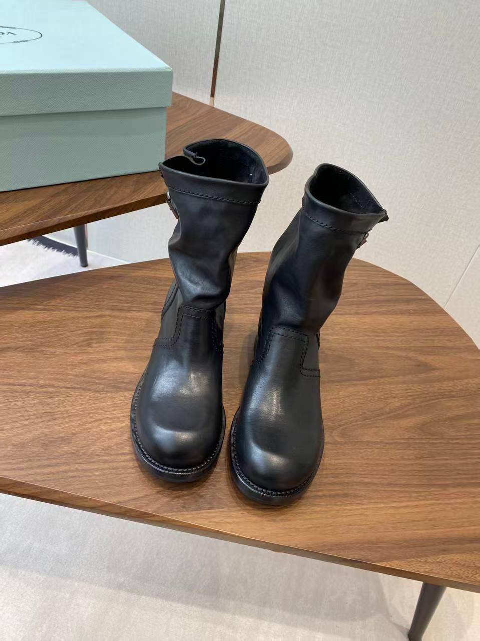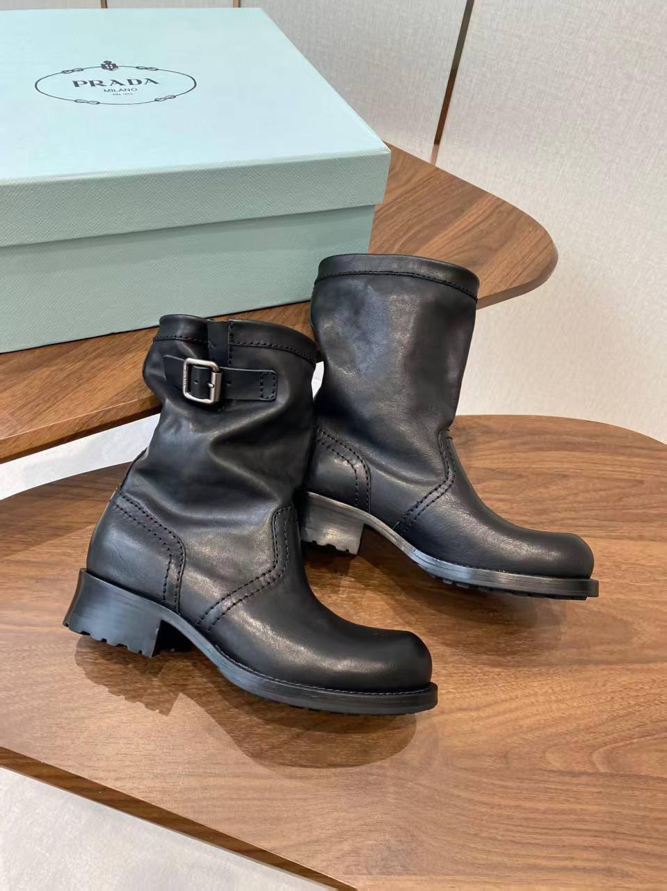 Prada Женские Чёрные Ботинки – воплощение элегантности для взыскательных. Классический дизайн, массивный протектор и молния по всей длине голенища. Создайте безупречный образ!