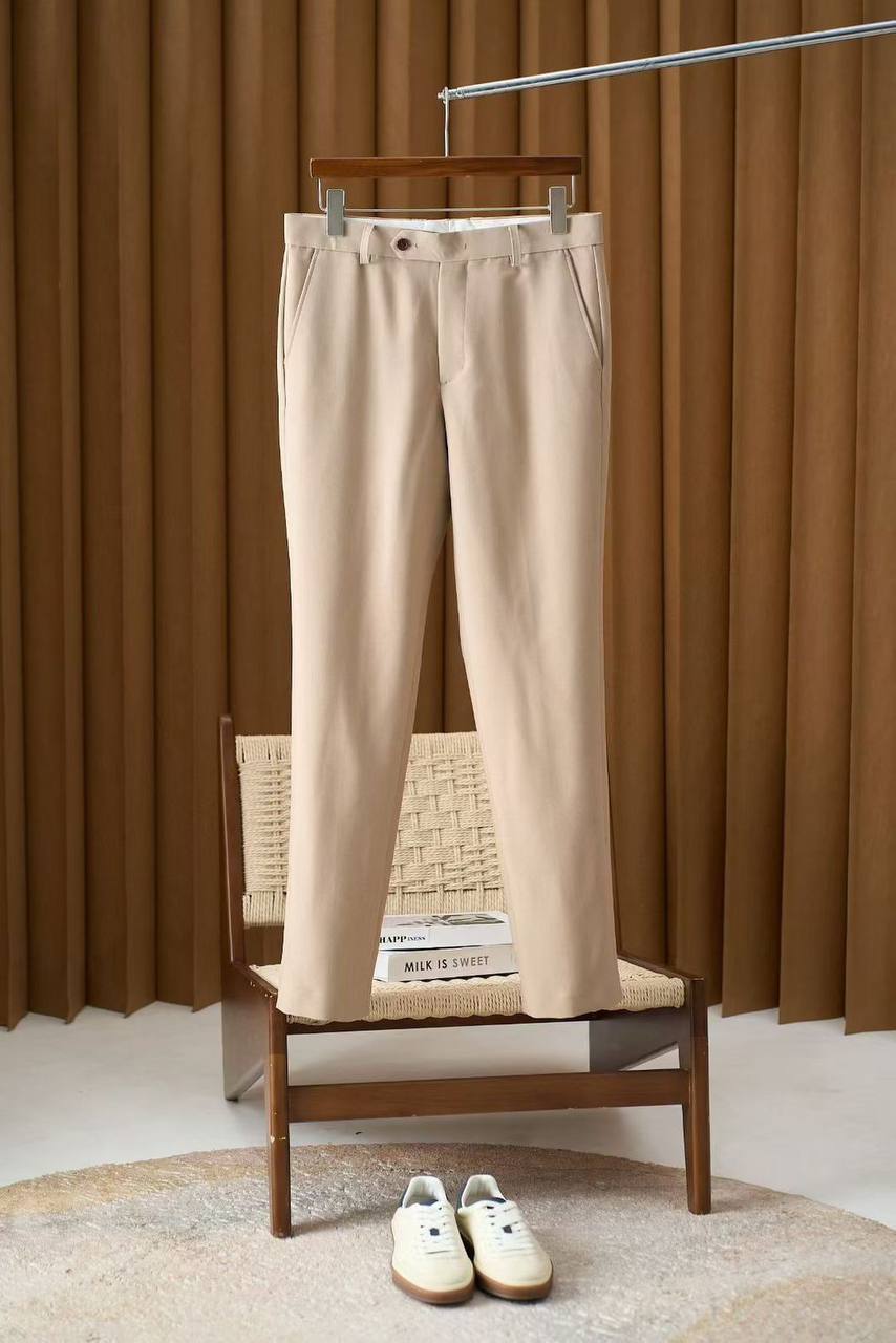 Мужские бежевые брюки свободного кроя. Премиум хлопок, высокий пояс, широкий крой. Создайте расслабленный, но элегантный образ. Идеально для тех, кто ценит комфорт и премиум качество.