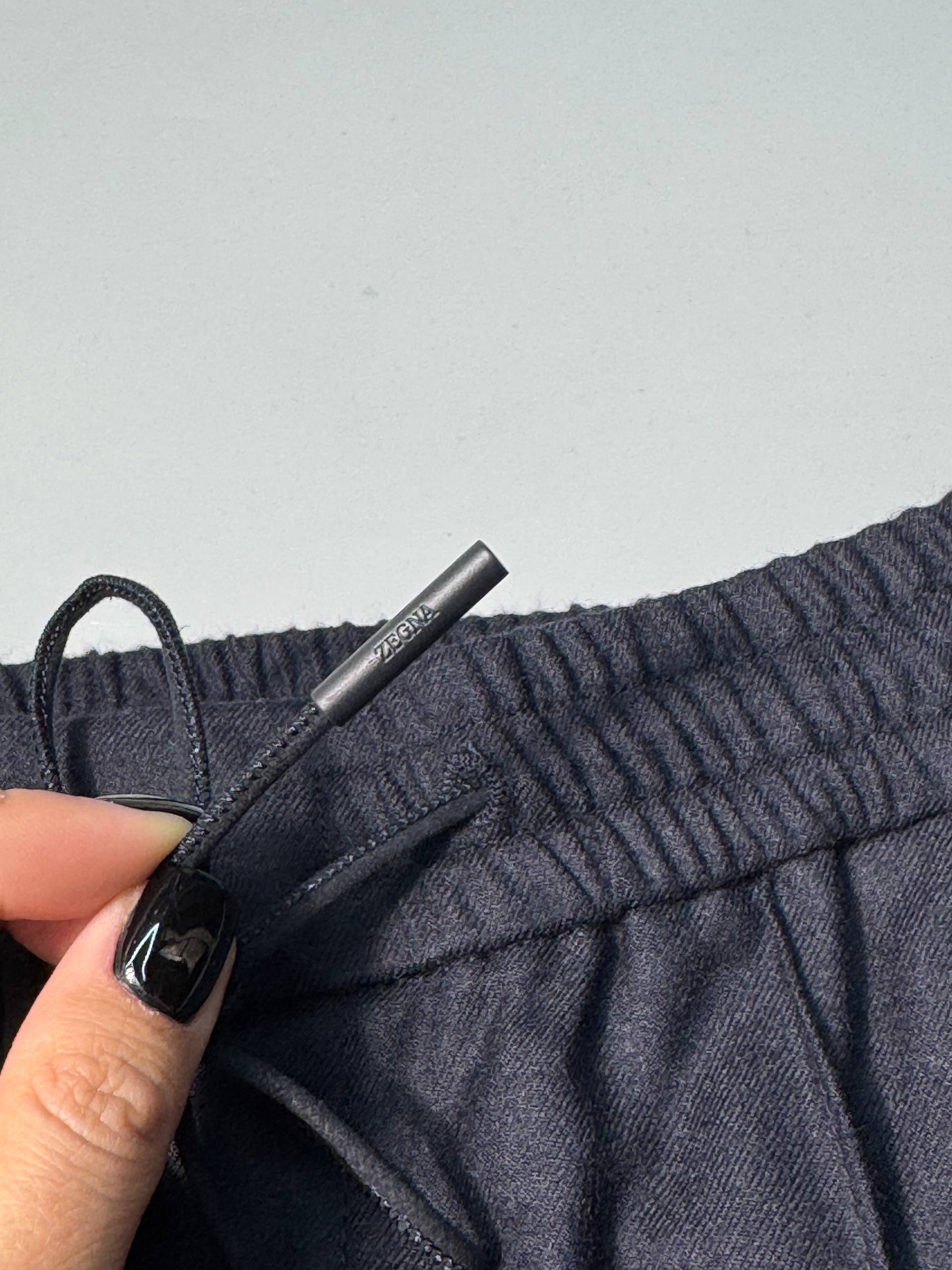 Мужские брюки Zegna синие: воплощение люкс-комфорта. Широкий крой, плотный трикотаж и эластичная резинка – ваш идеальный выбор для создания элегантного повседневного образа в стиле люкс.