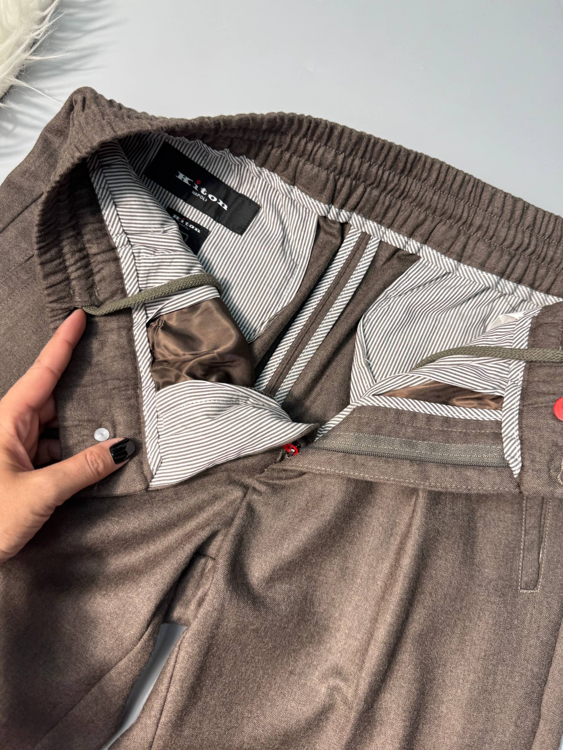 Мужские Kiton коричневые брюки: безупречный крой, плотная шерсть премиум-класса и высокий уровень комфорта. Идеальный выбор для тех, кто ценит настоящий люкс.