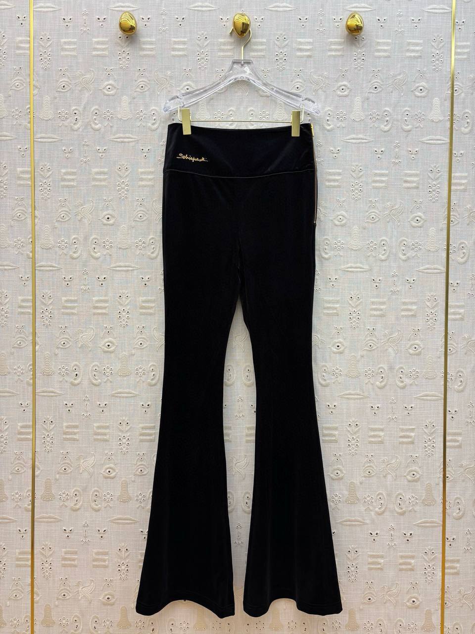 Подчеркните свой стиль с Женскими брюками Schiaparelli чёрные. Идеальный силуэт, плотный трикотаж и элегантный клёш для тех, кто ценит истинный люкс. Создайте свой неповторимый образ!