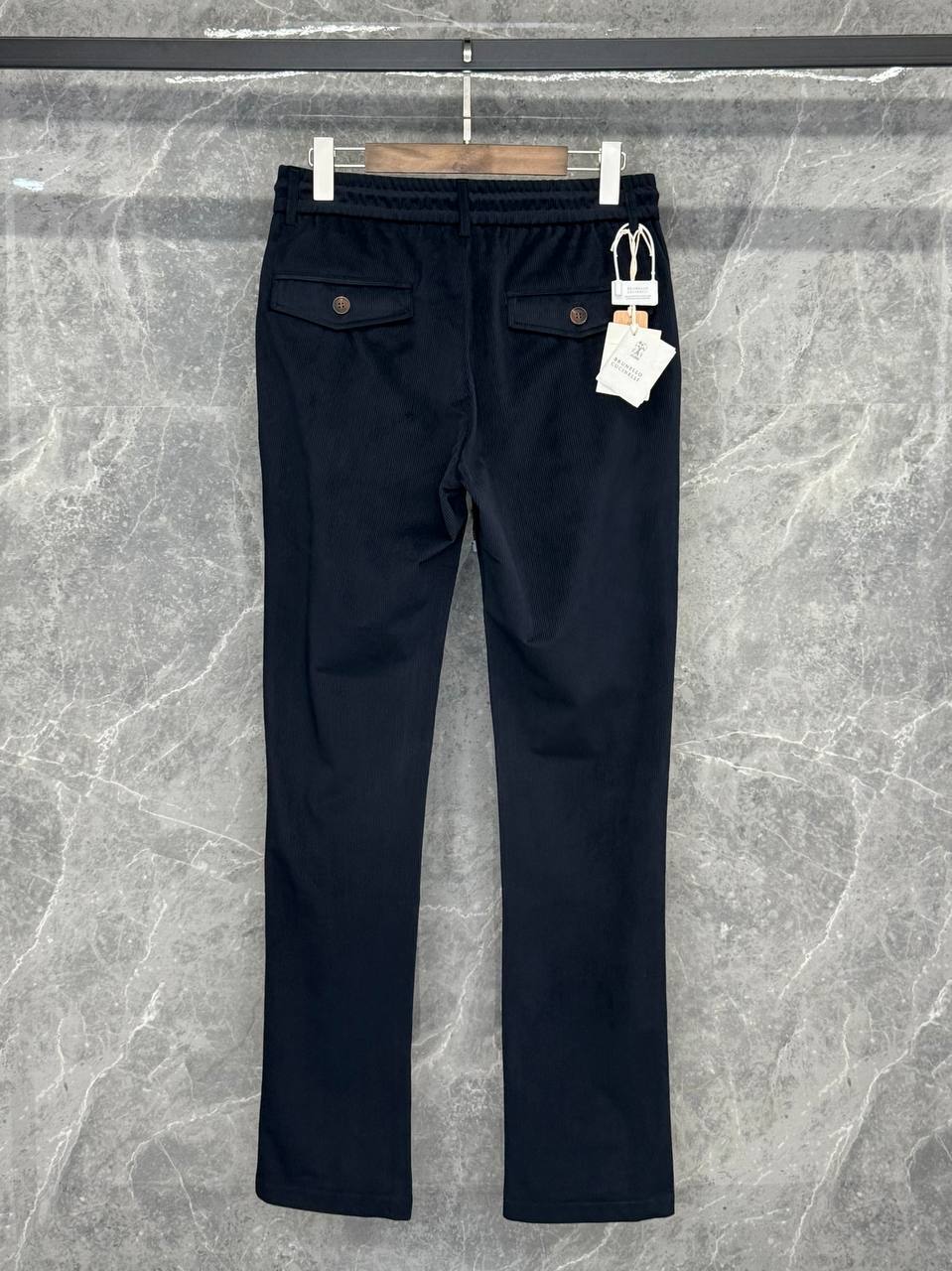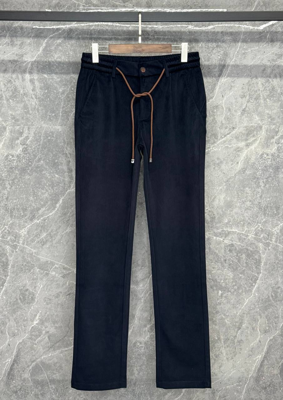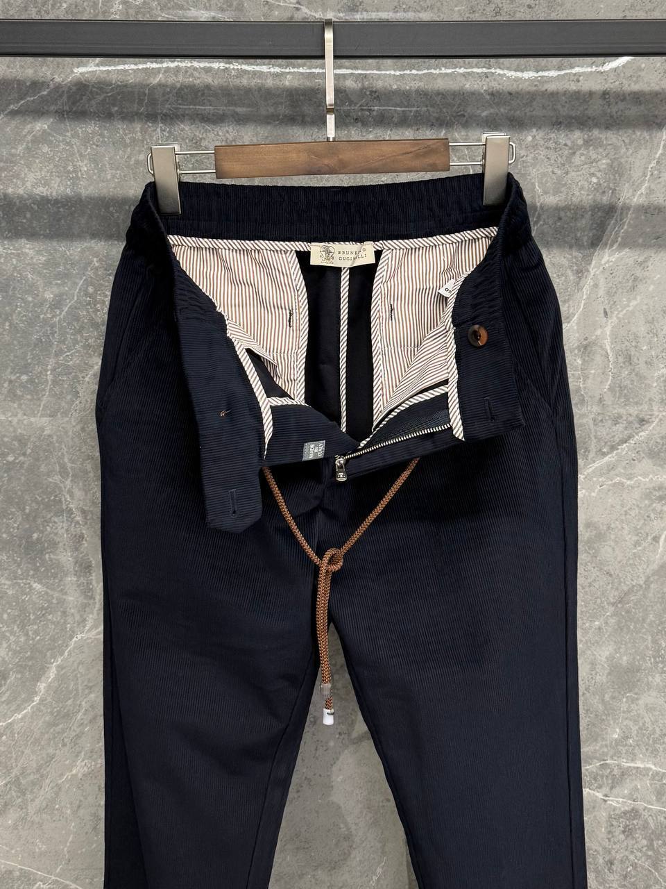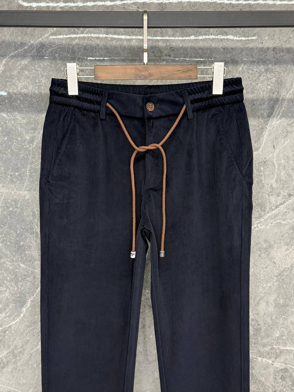 Brunello Cucinelli: Вельветовые брюки в стиле люкс. Классический синий цвет, свободный крой и затягивающиеся шнурки. Создайте безупречный повседневный образ с этой премиальной велью.