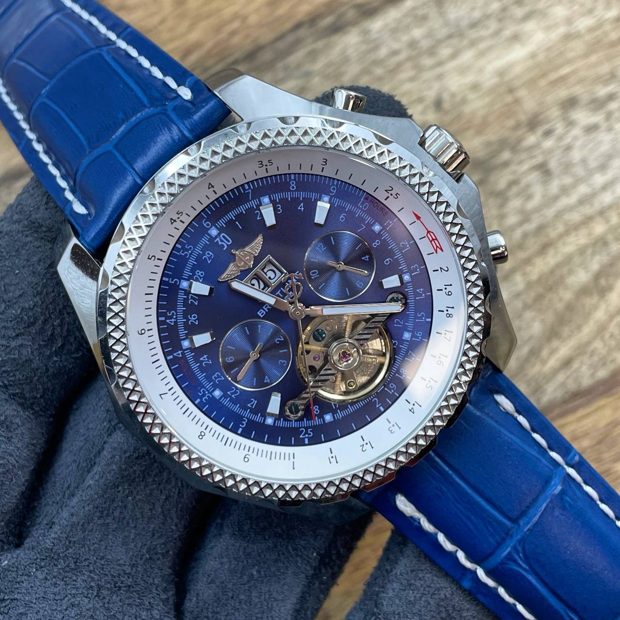 Для мужчины с чувством стиля и любящего классику - часы Breitling стальные 46 мм кожаные механические с автоподзаводом 3АТМ - идеальное сочетание элегантности и надежности