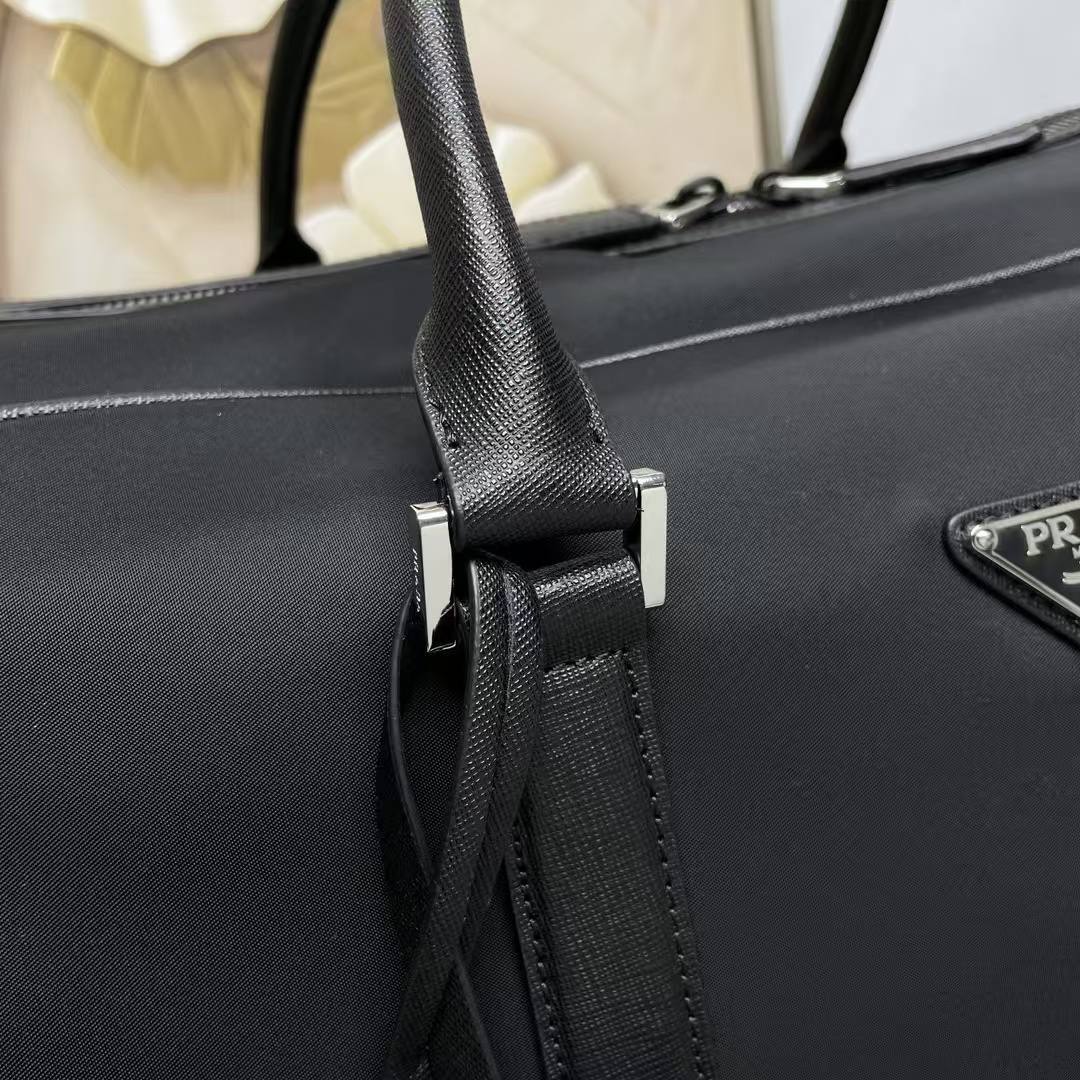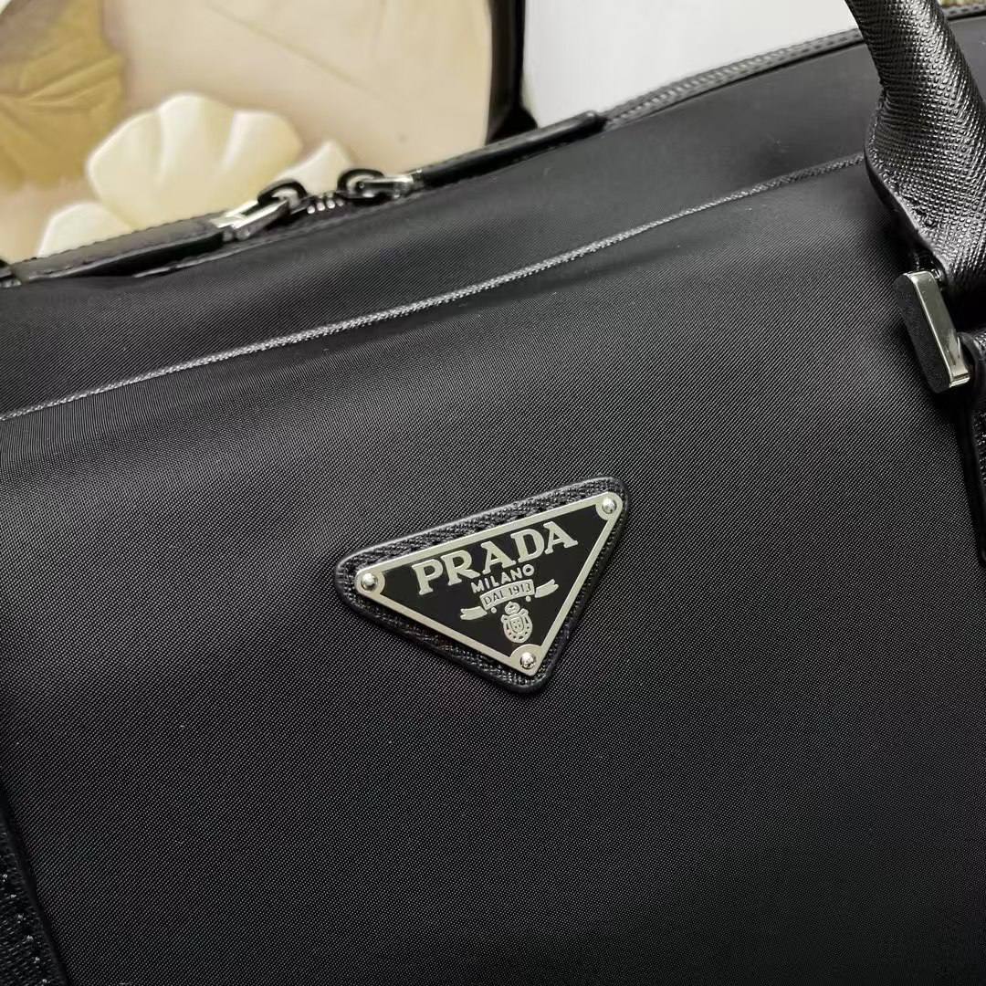 Для мужчин, любящих стиль и комфорт. Чёрная дорожная сумка Prada - идеальный акцент для вашей мужской коллекции.