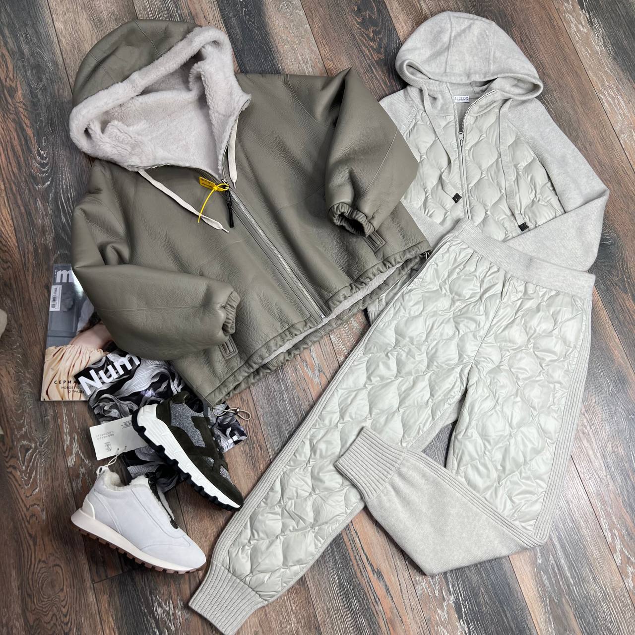 Серая дубленка женского модного бренда Brunello Cucinelli - эксклюзивный шиллинг для настоящих красоток.