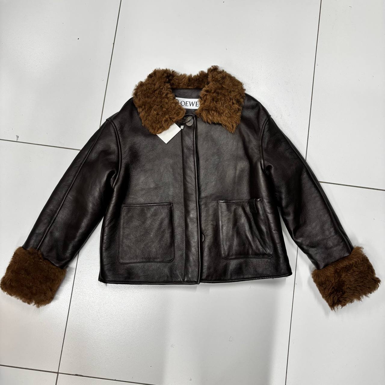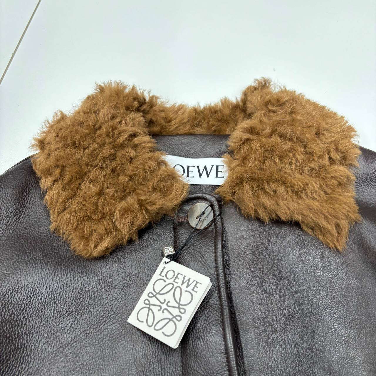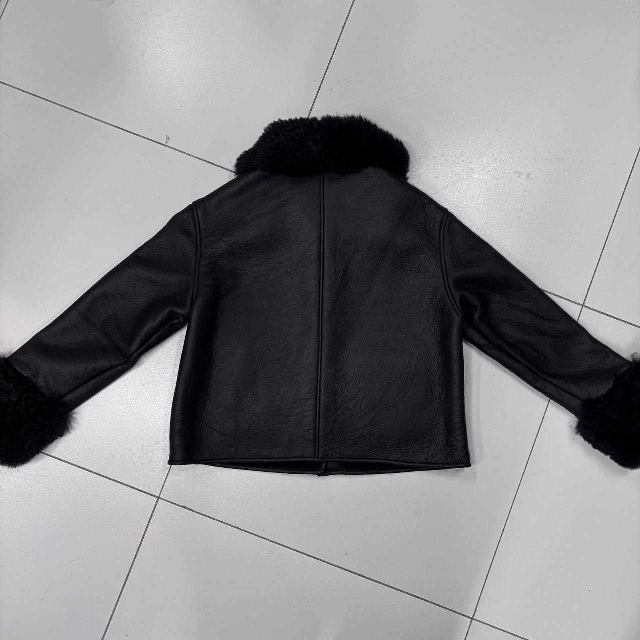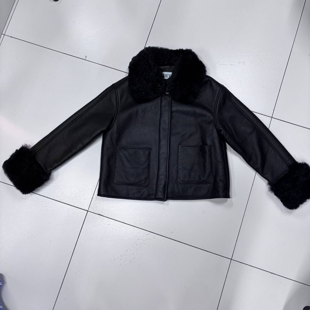 Женская Дубленка Loewe Чёрная – воплощение элегантности и тепла. Мягкая кожа, воротник-стойка из меха и прямой крой. Почувствуйте премиум-качество: бесплатная примерка!