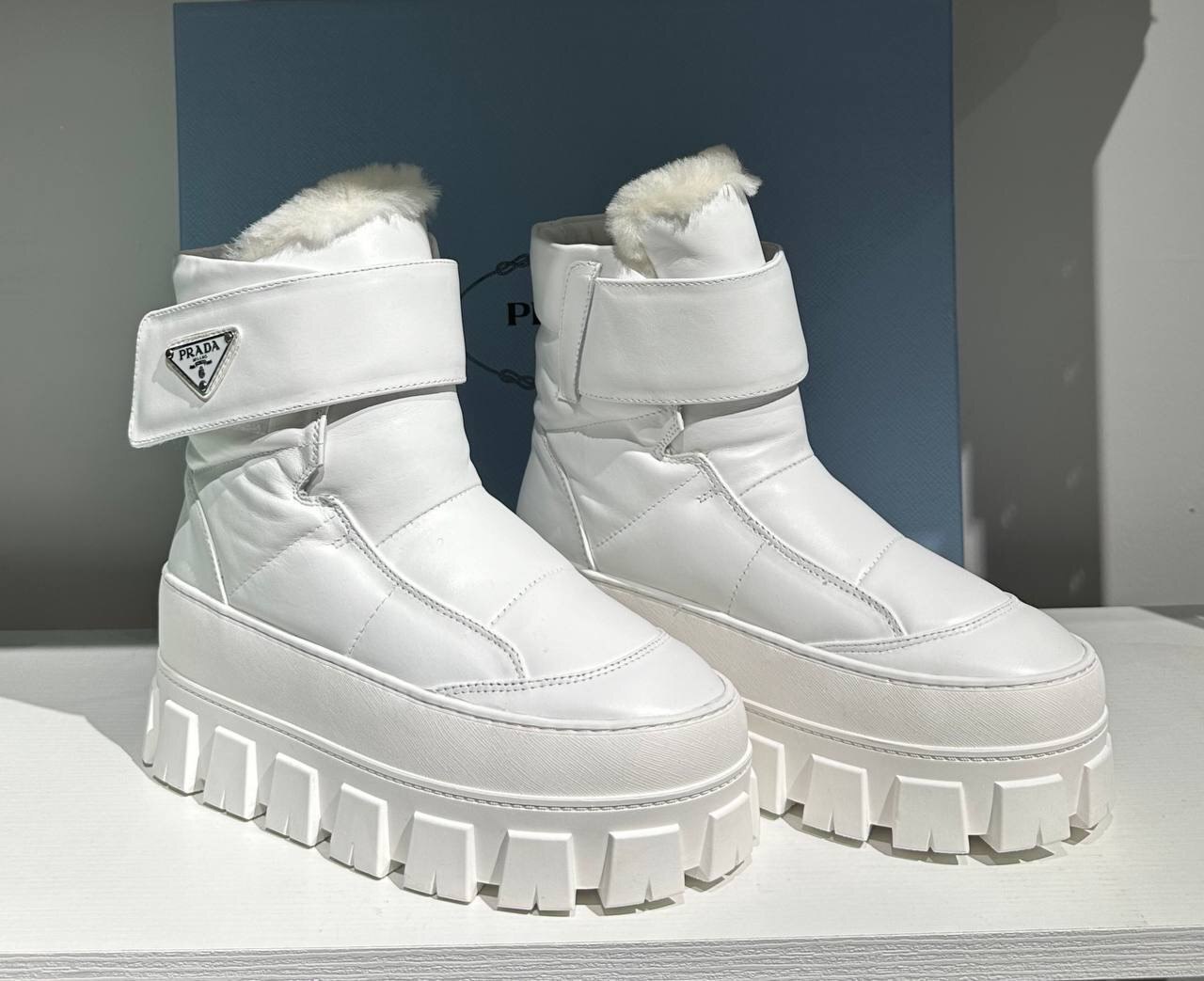 Белая женская классика Дутик Prada - идеальный выбор для стильной и элегантной женщины.