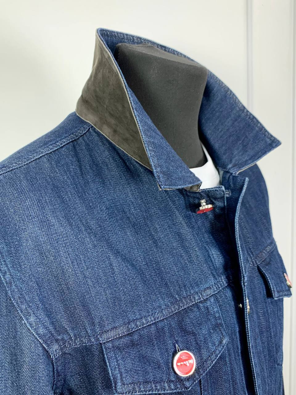 Мужская джинсовая куртка Kiton синяя - элегантная одежда для мужчин, подчеркивающая стиль и роскошь в люксе.