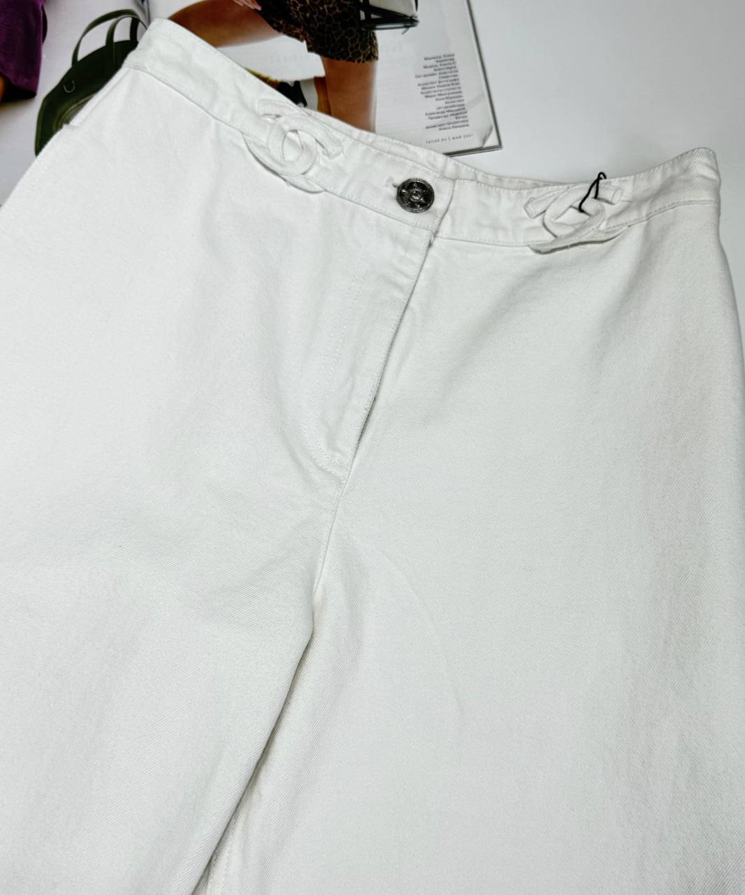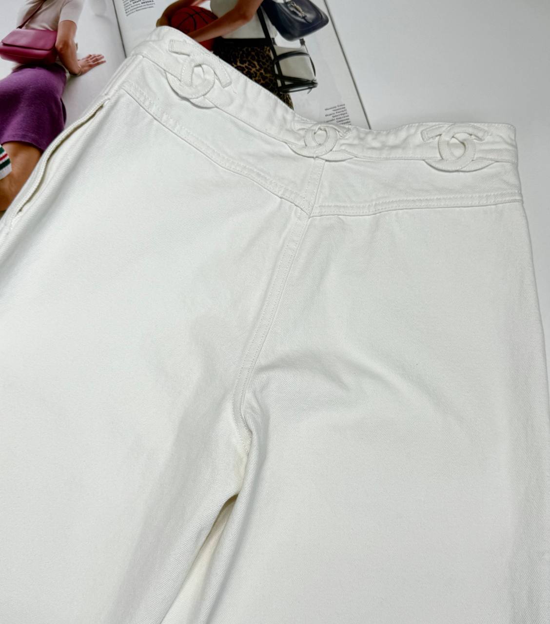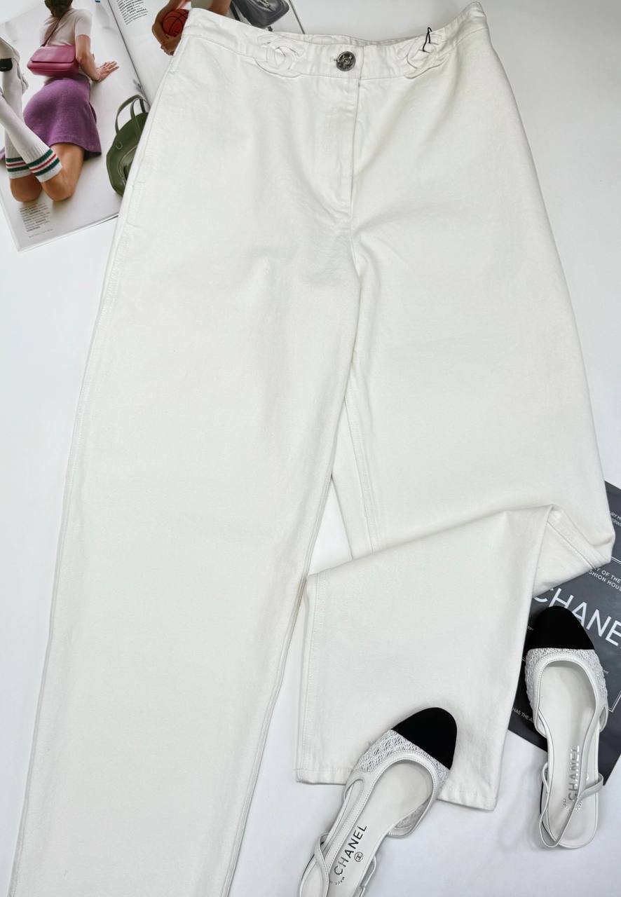 Белые женские джинсы CHANEL - идеальный выбор для модной женщины, ищущей высококачественную одежду с индивидуальным стилем.