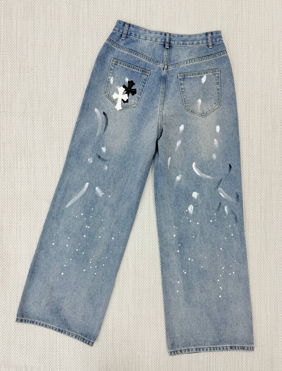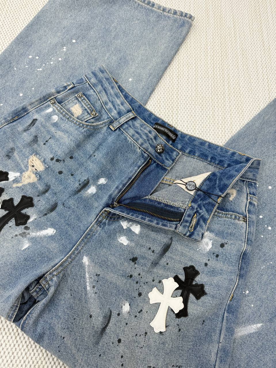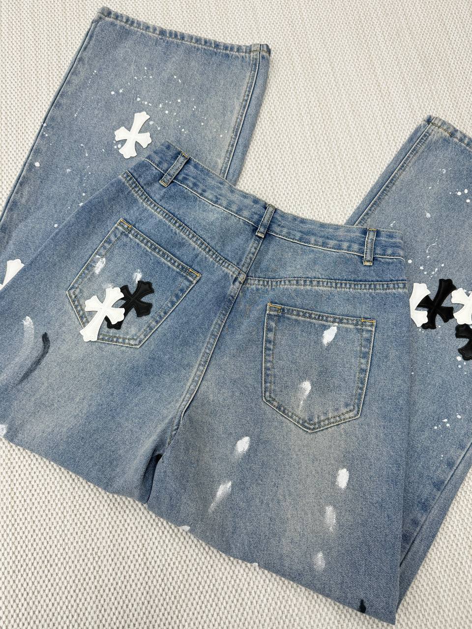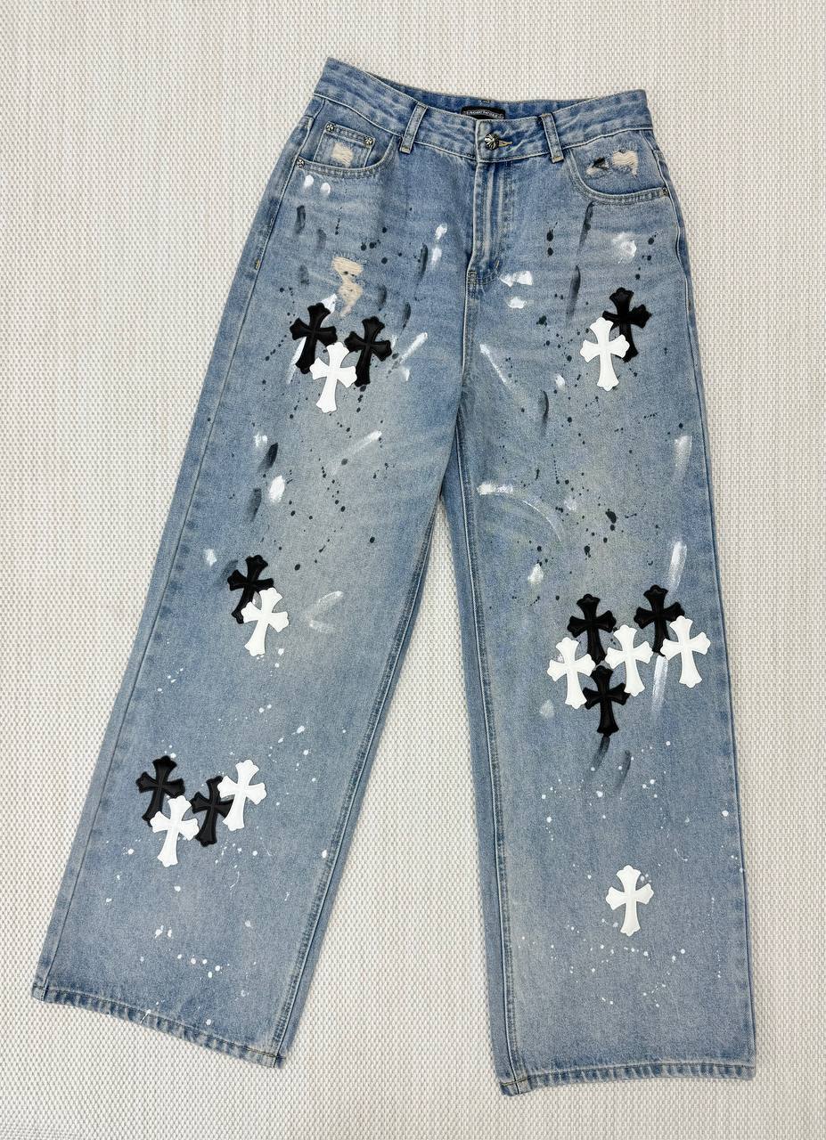 Женские джинсы Chrome Hearts голубые - модная одежда для женщины с чувством стиля и любви к роскоши люкс.