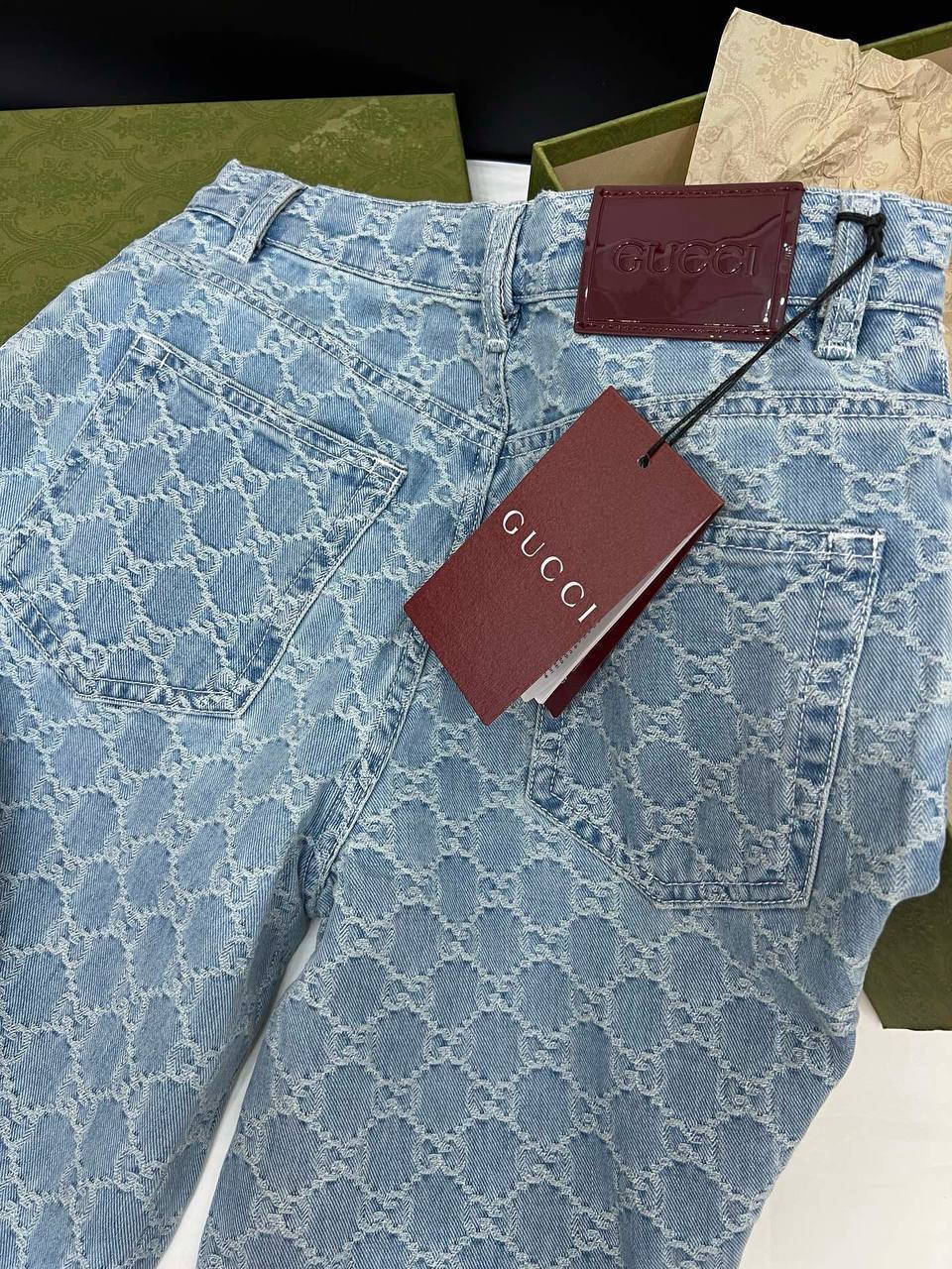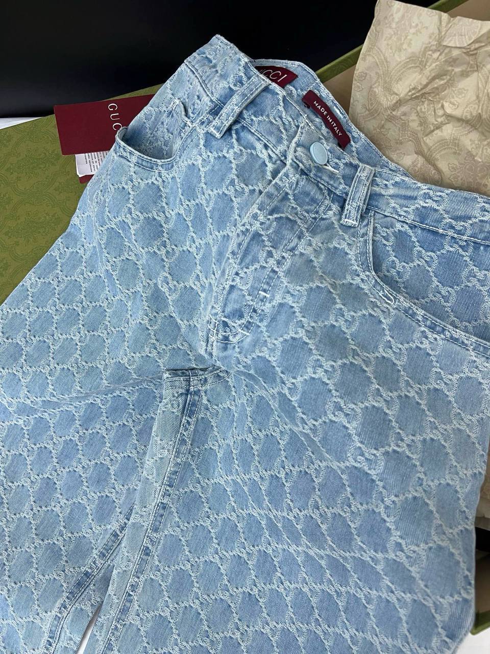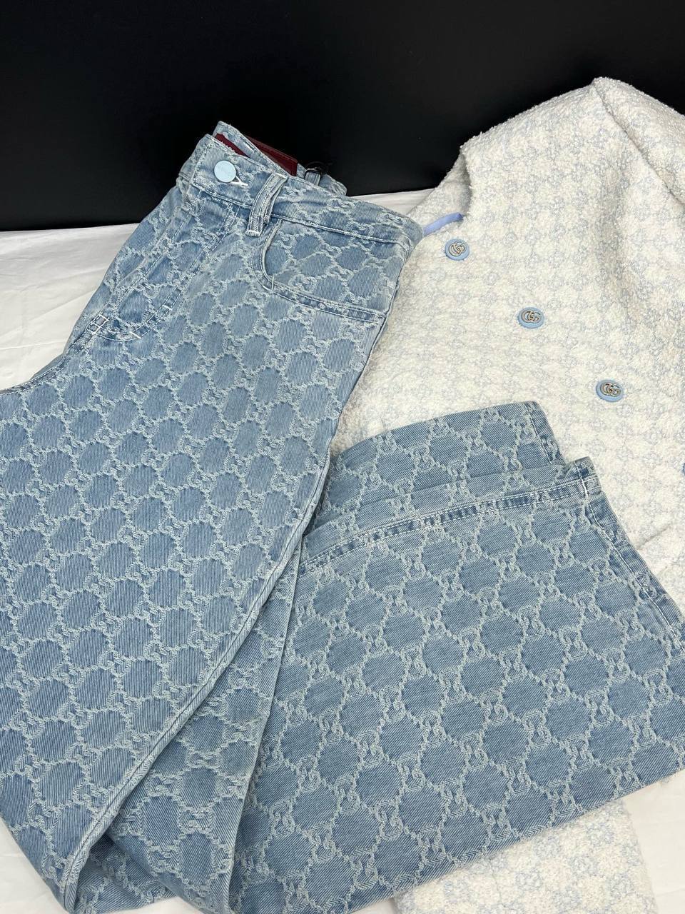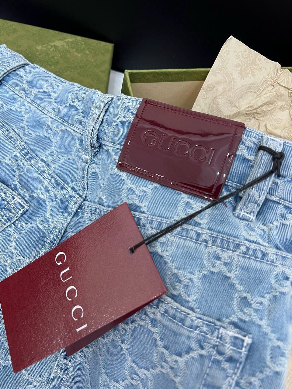 Женская джинсовая одежда Gucci коричневого цвета - стильная и элегантная присутствовать на высшем уровне в мире высокой моды.