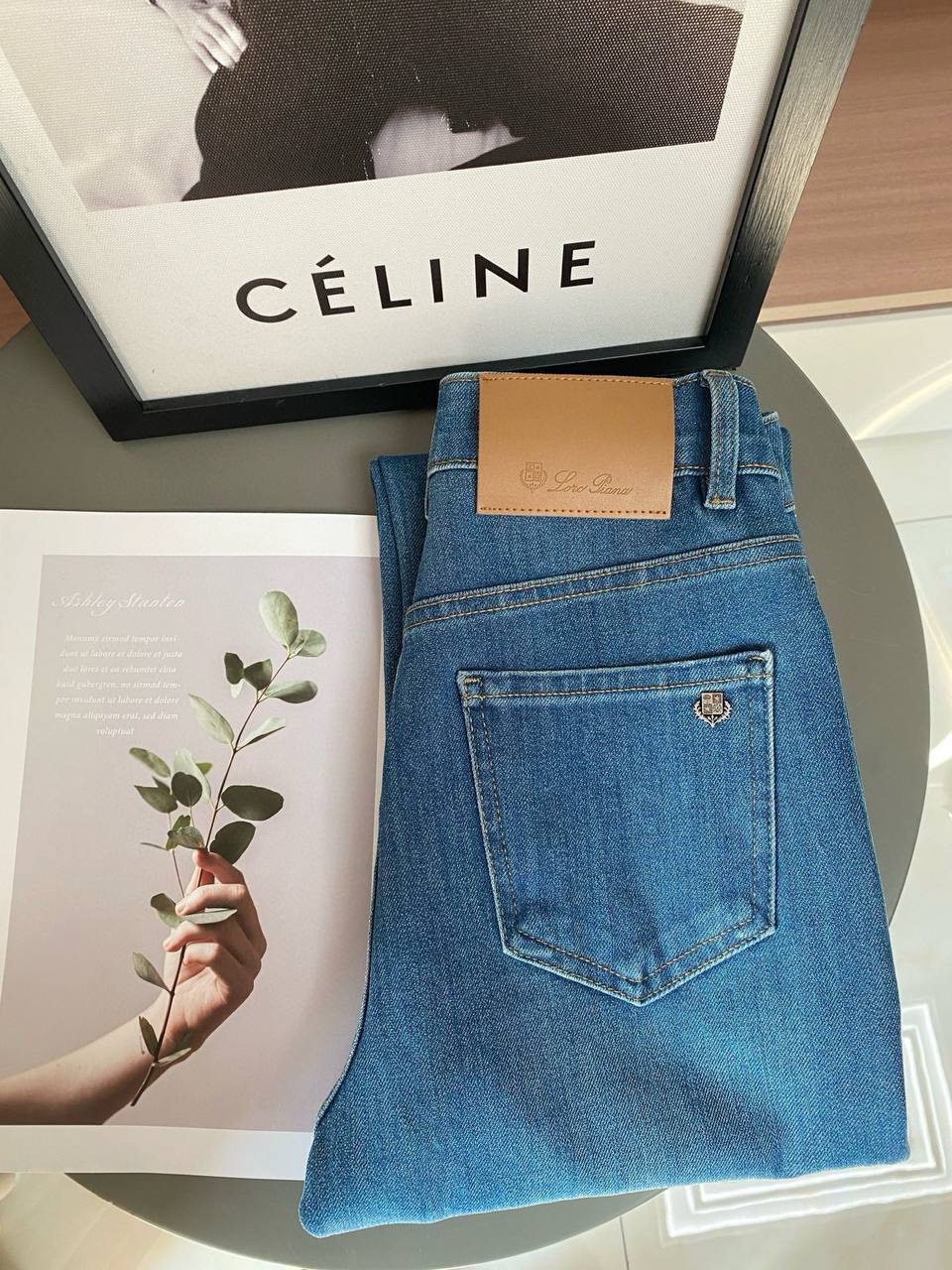 Женские джинсы Loro Piana голубые, элегантная премиум-одежда для дам высшего класса.