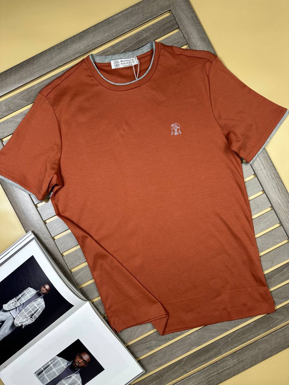 Изысканная мужская футболка Brunello Cucinelli: терракотовый оттенок роскоши. Доставка с примеркой.