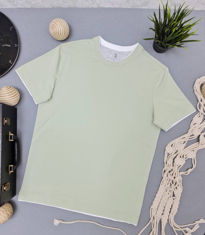 Изысканная футболка Brunello Cucinelli: Фисташковый акцент премиум-класса.