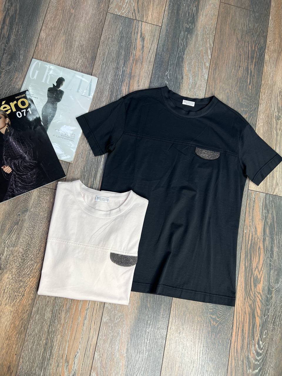 Изысканная футболка Brunello Cucinelli: Белая и черная эстетика для элегантной женщины.