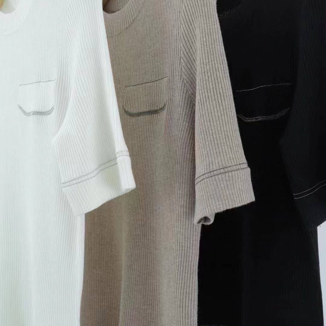 Изысканная женская футболка Brunello Cucinelli: Белый, серый, черный - воплощение люкс.