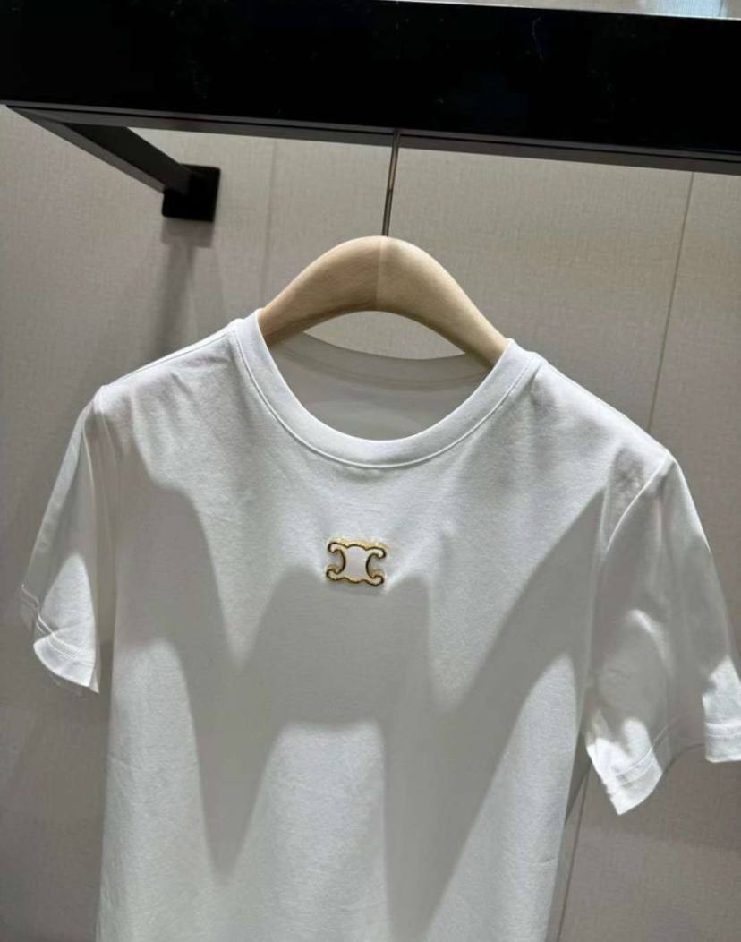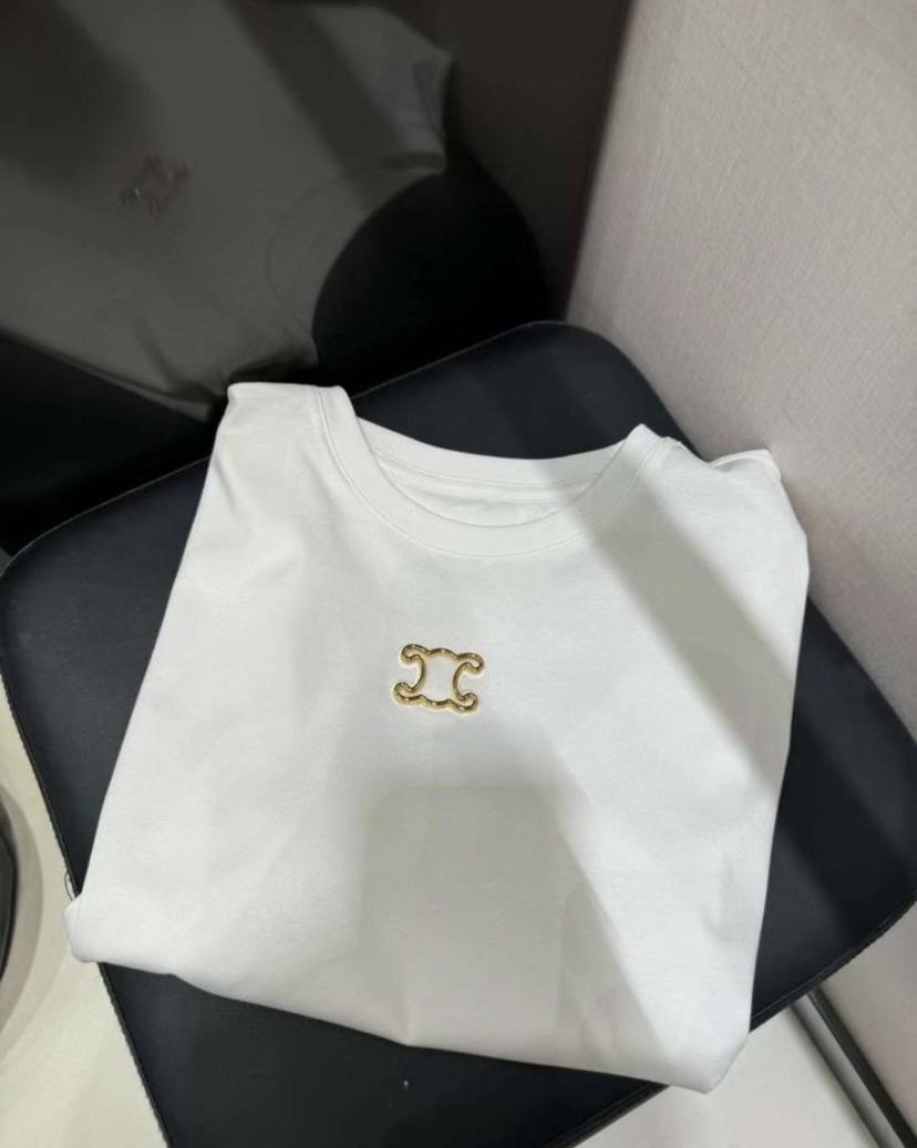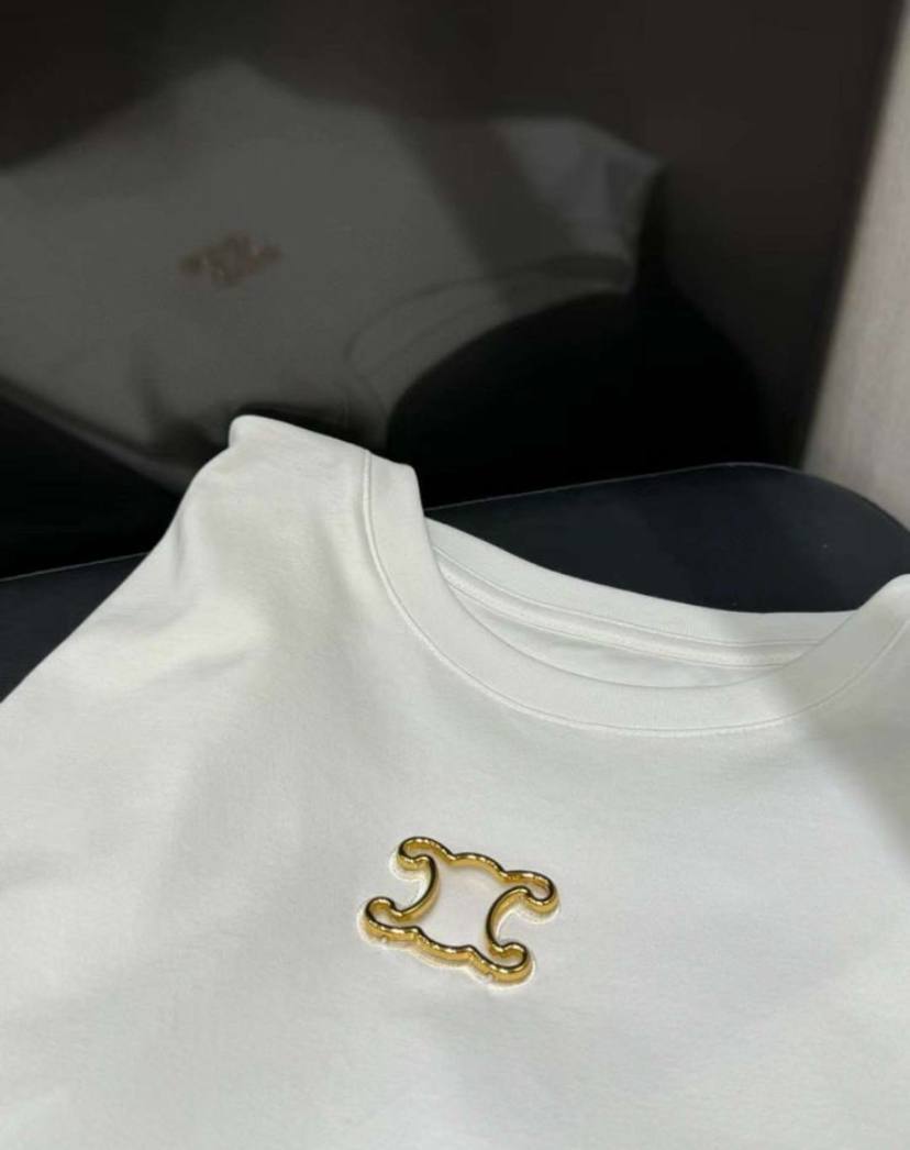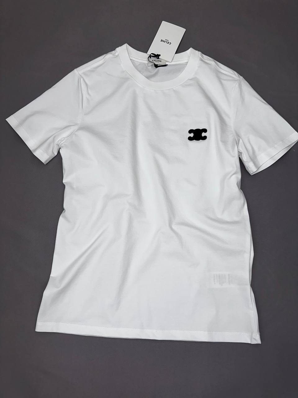 Белая красота от Celine - женская футболка с эффектным синим принтом, гарантирующая превосходство в модном мире!