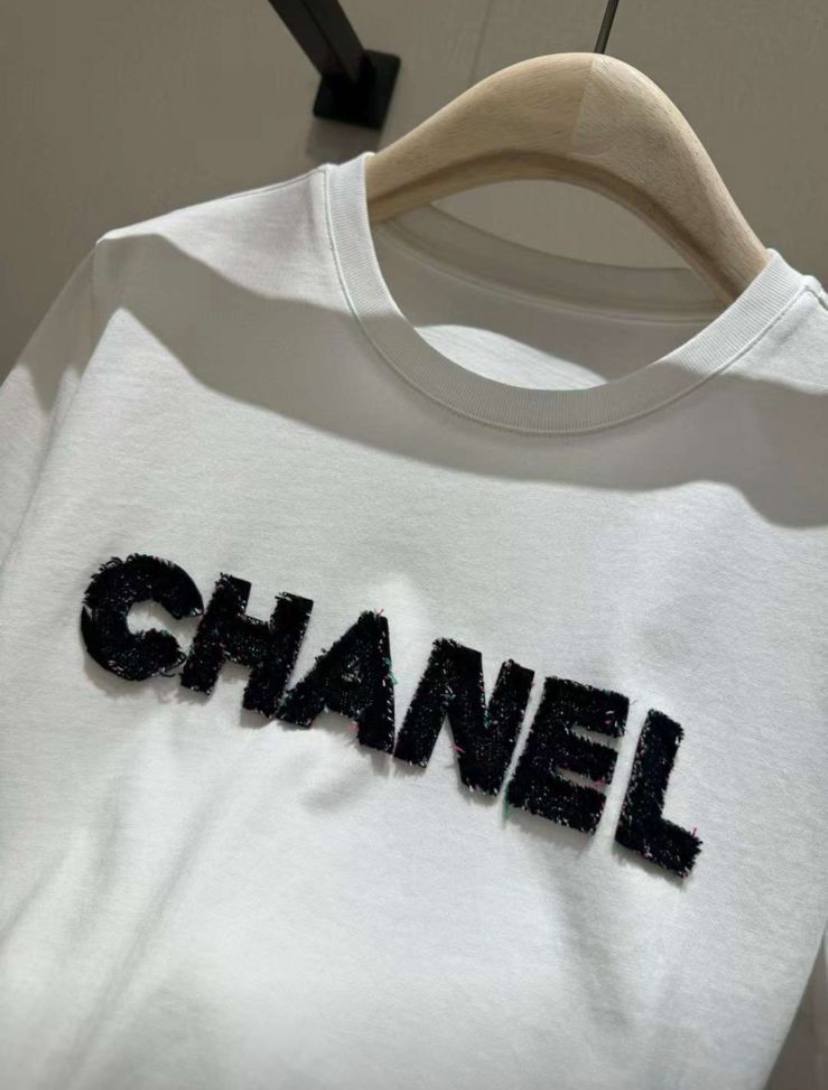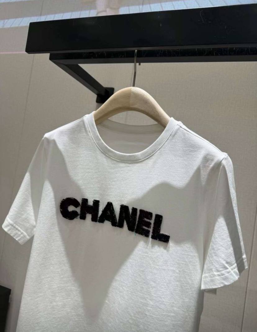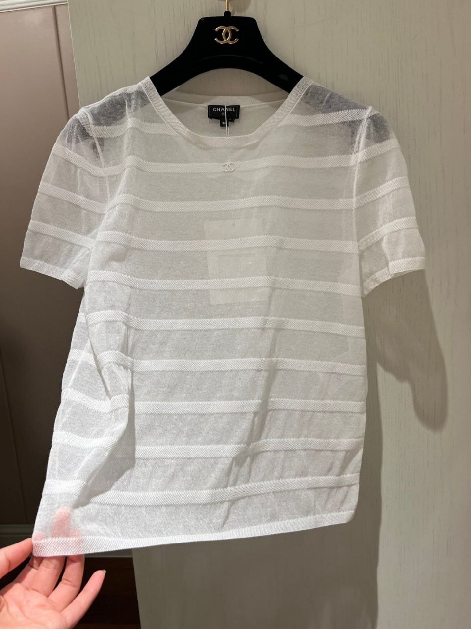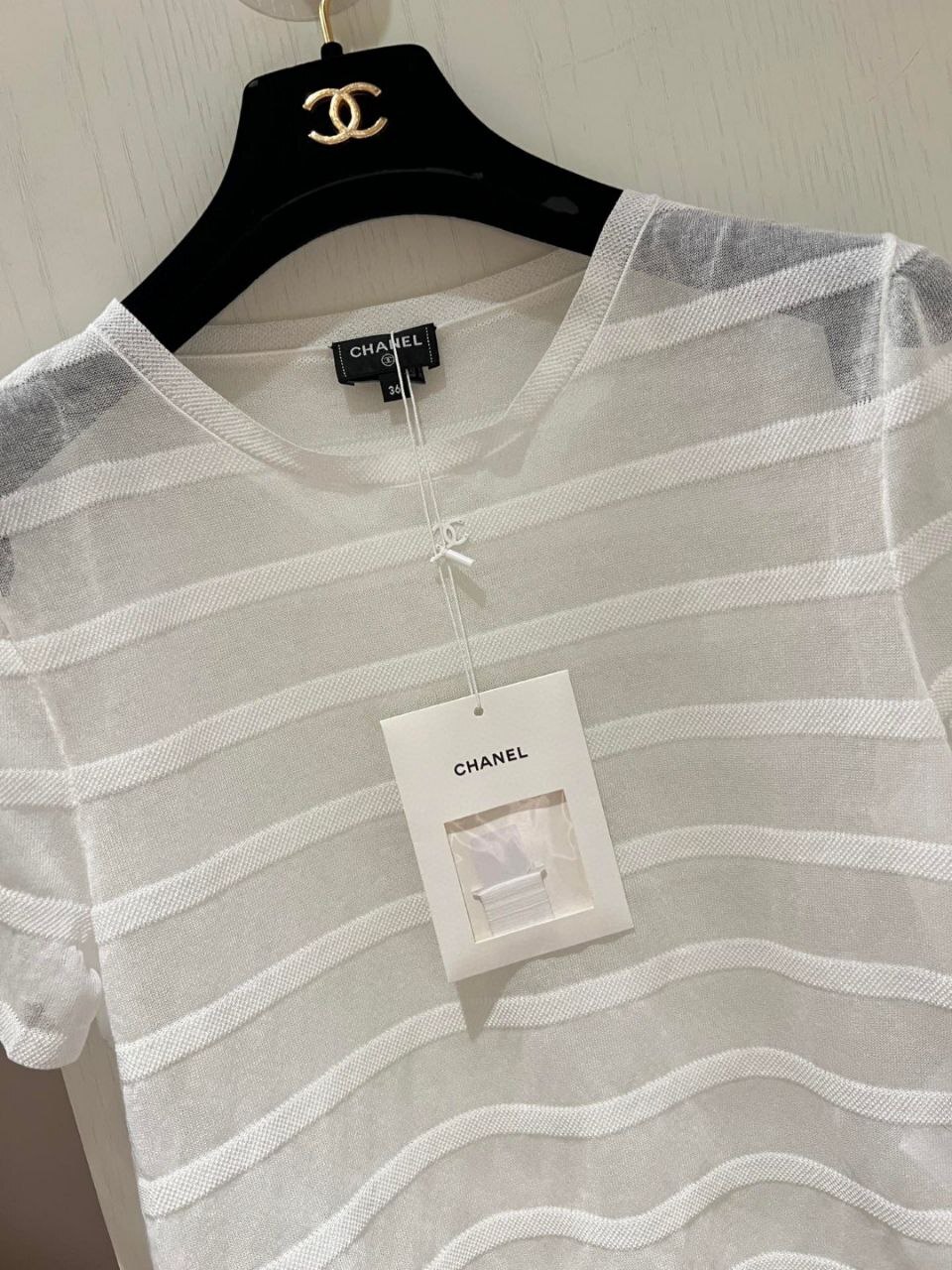 Серебристая классика моды - женская футболка Chanel, идеальная для тех, кто ценит стиль и элегантность.