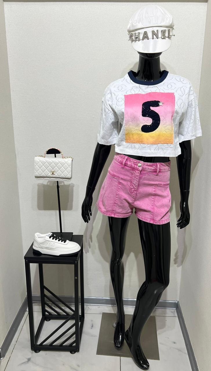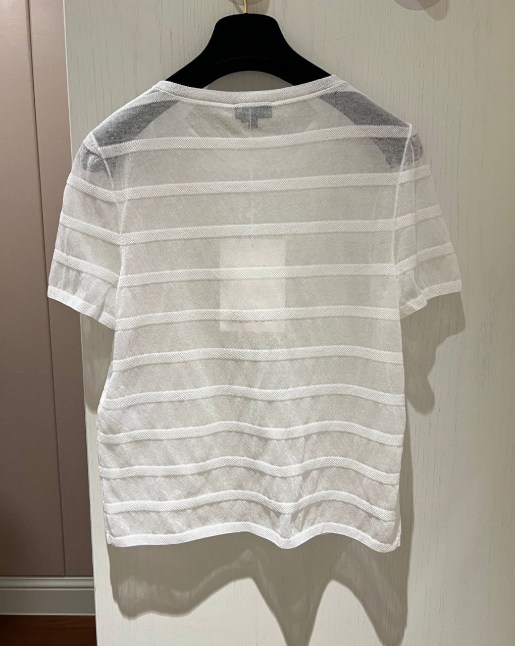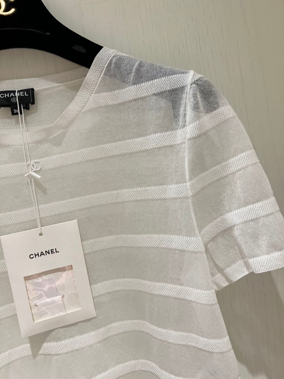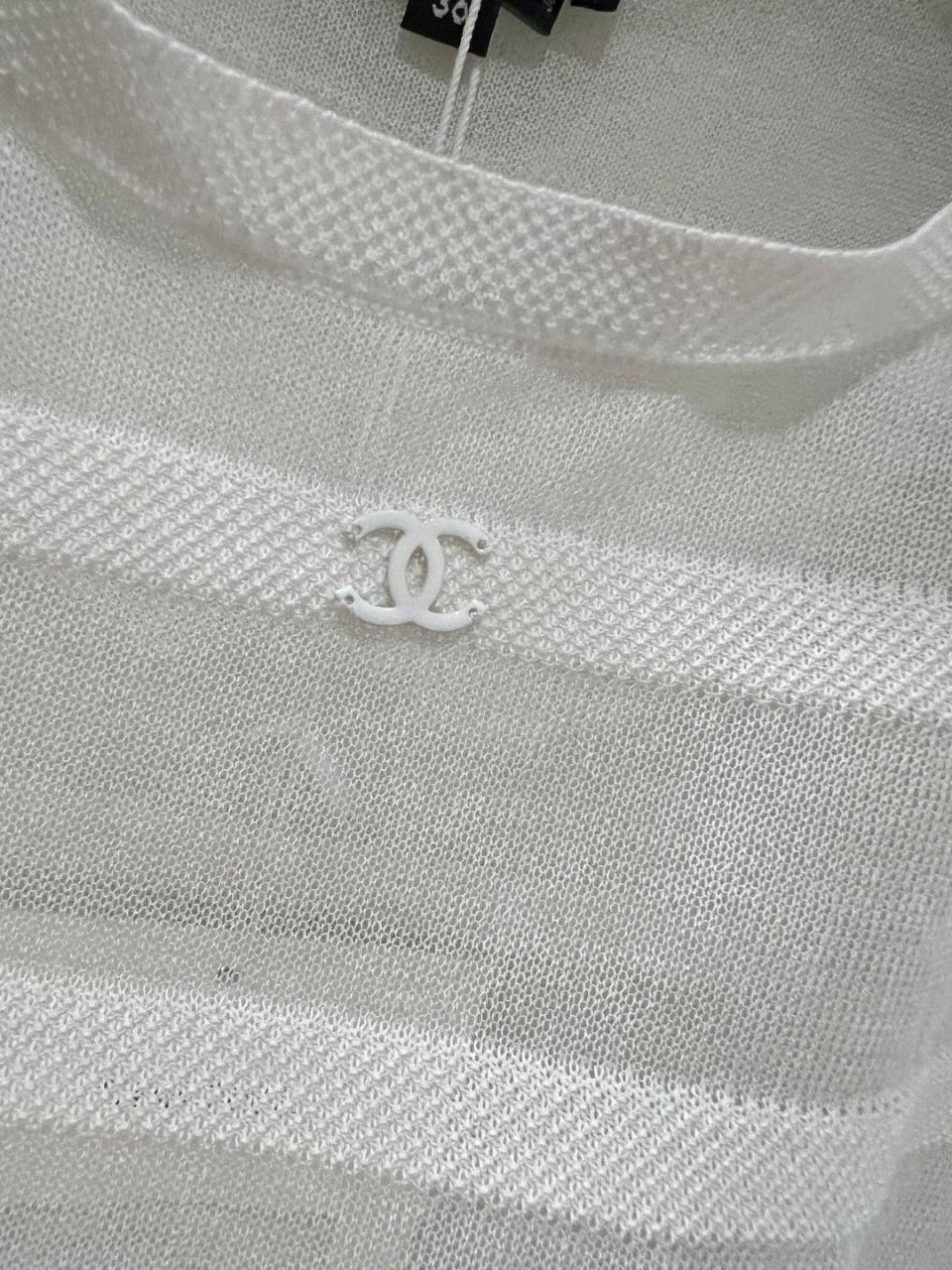 Серебристая классика моды - женская футболка Chanel, идеальная для тех, кто ценит стиль и элегантность.