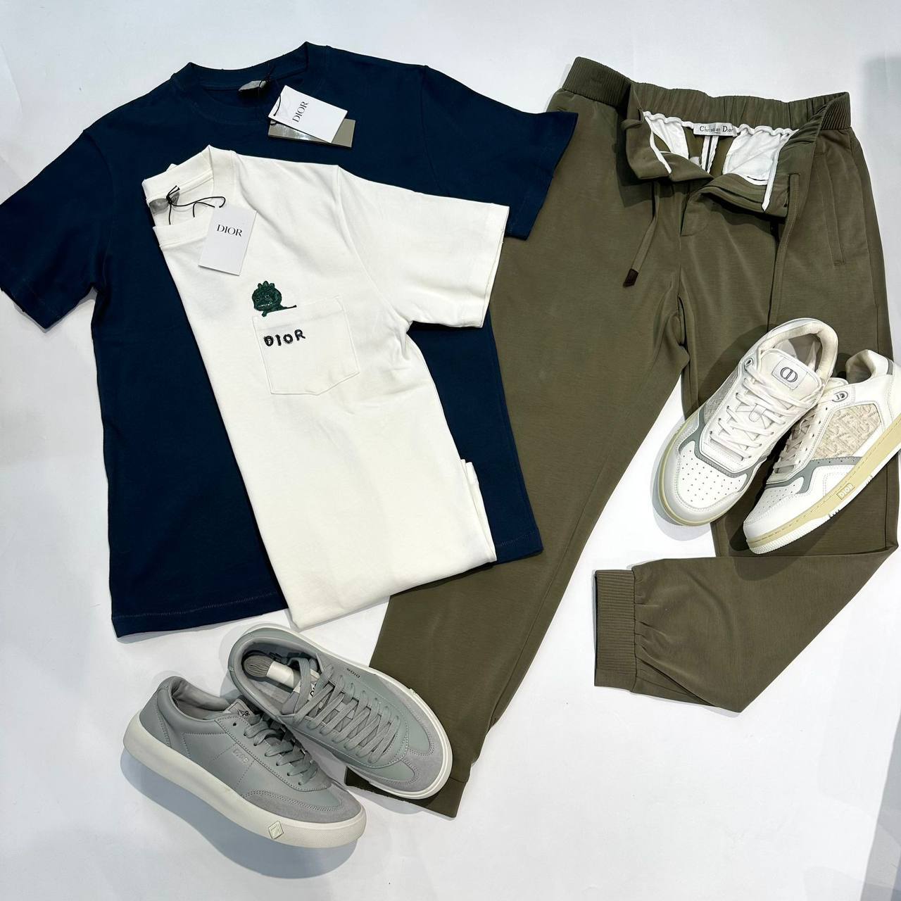 Белая мужская футболка Christian Dior с синей отделкой - шикарный акцент к любому наряду, сочетающий модную элегантность и комфорт.