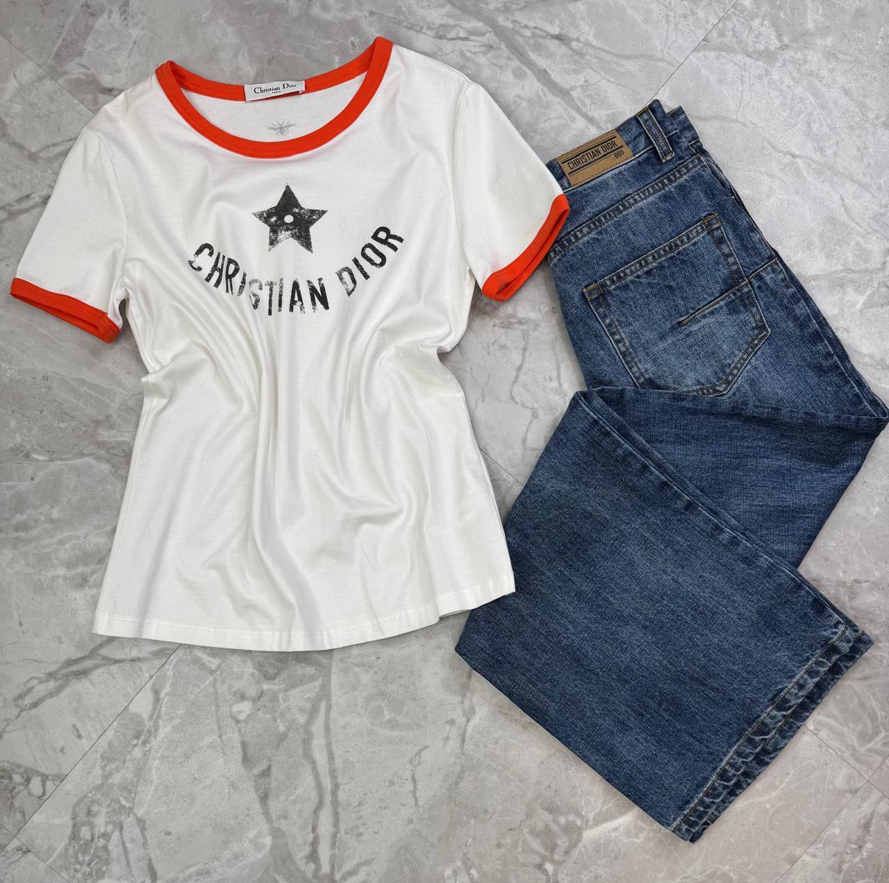 Белая женская футболка Dior - элегантное сочетание стиля и качества.