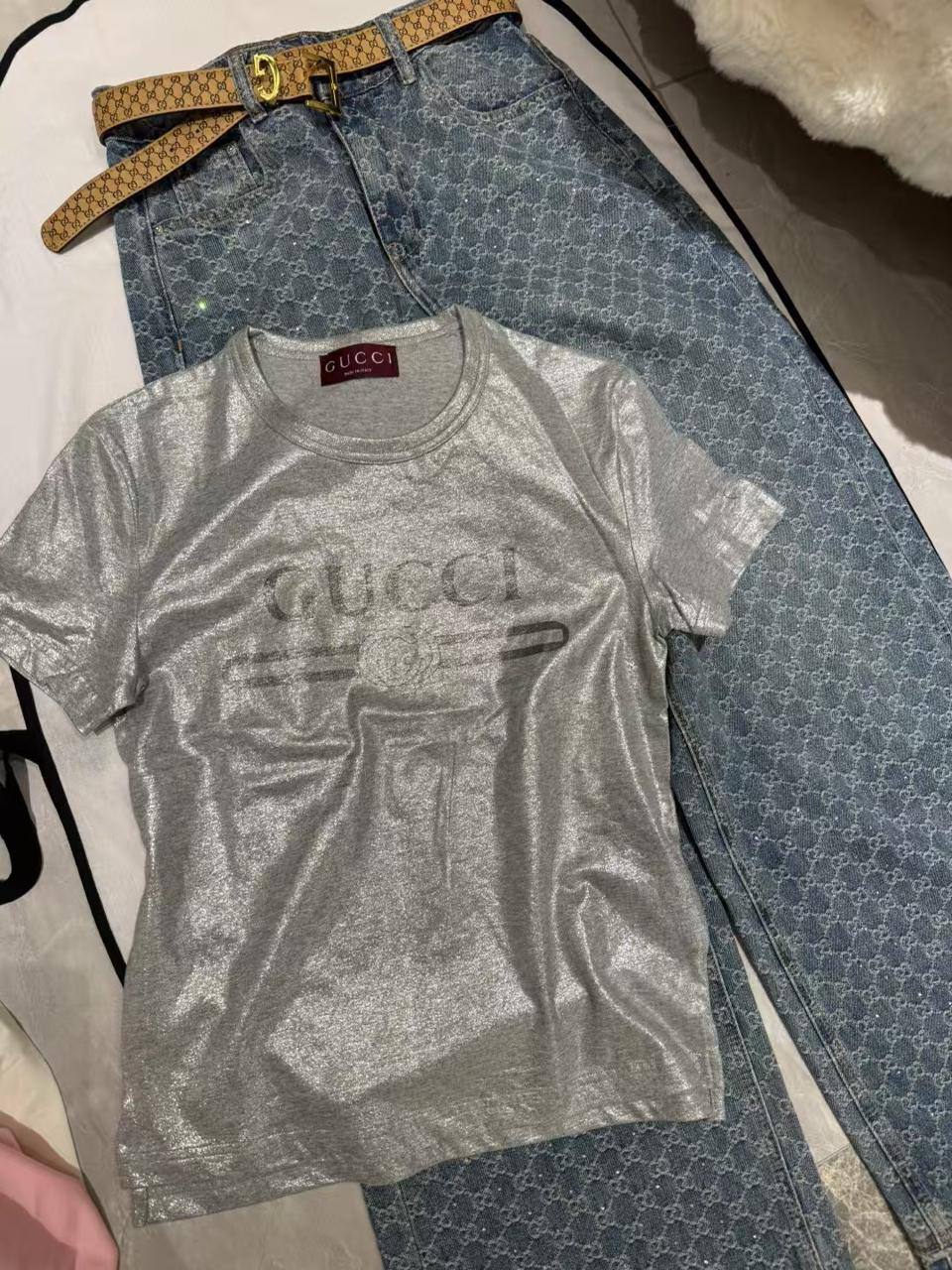 Для женщин с высшим вкусом - Женская футболка Gucci серая. Усовершенствуйте свой стиль с брендовой одеждой.