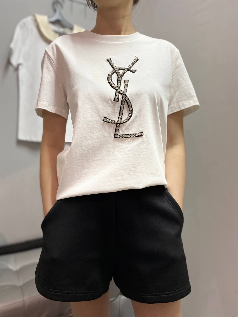 Белая женская футболка Yves Saint Laurent - элегантное дополнение к гардеробу любой дамы.