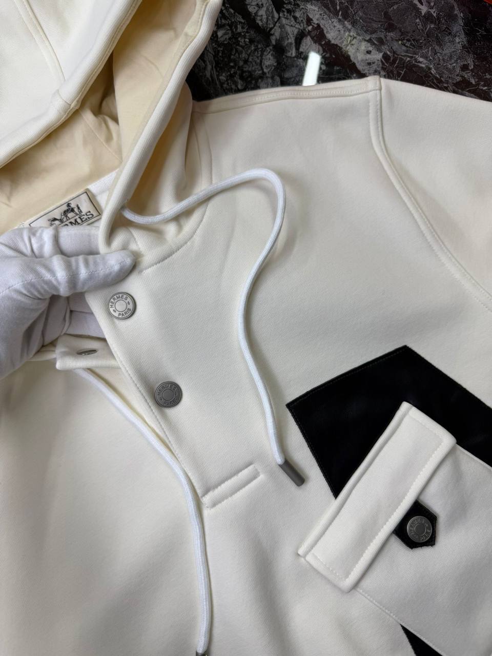 Белый мужской худи Гермес - идеальный выбор для стильного и комфортабельного образа.