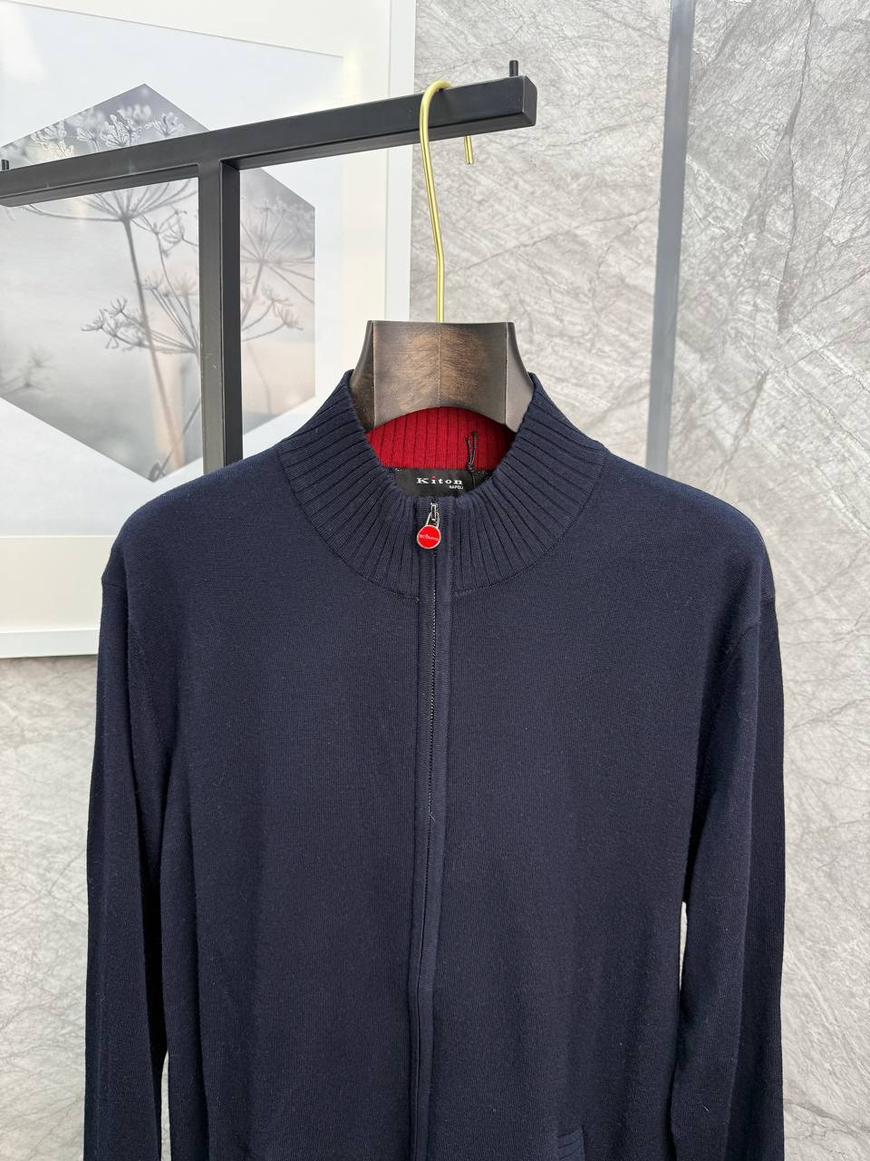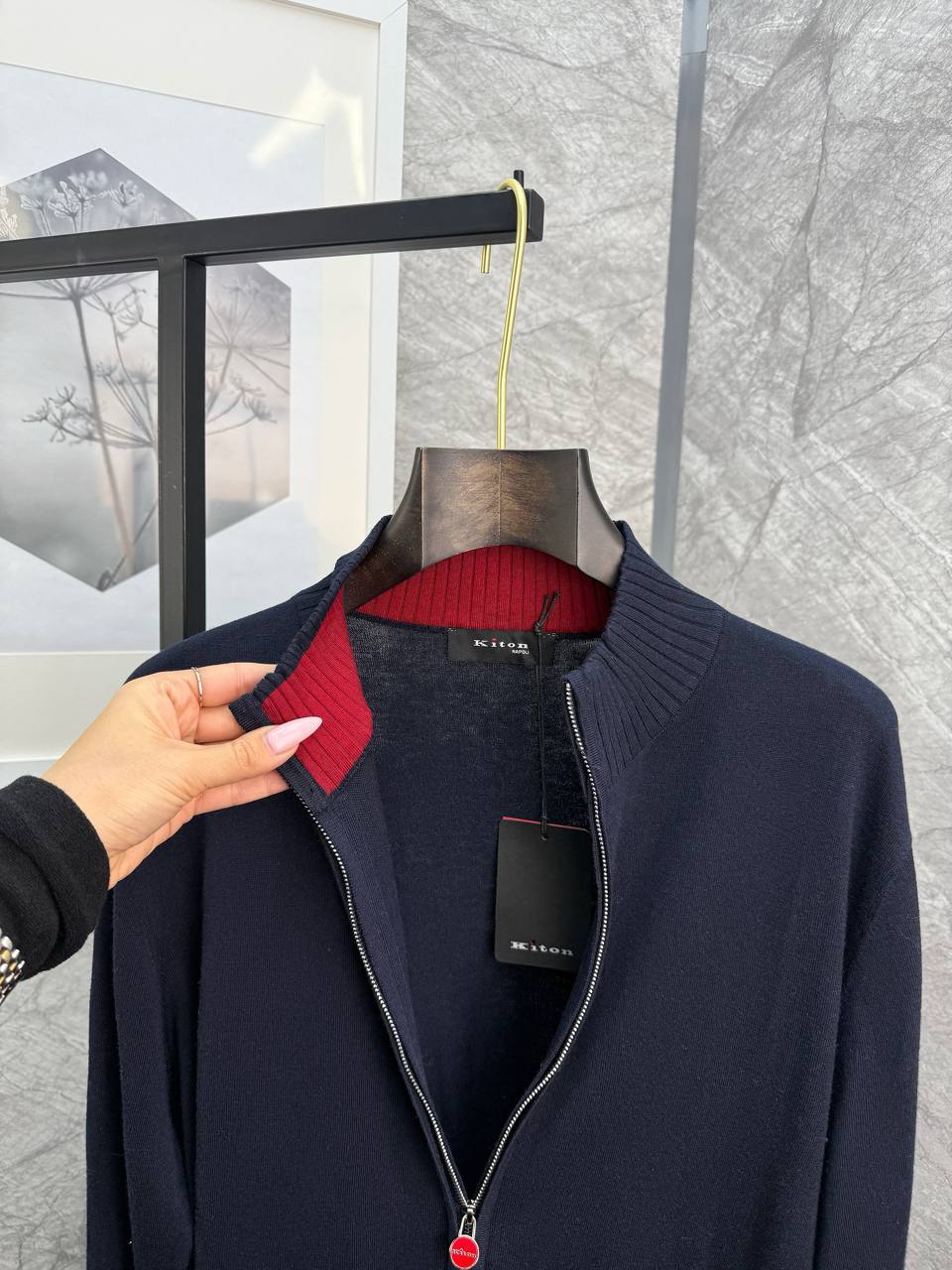 Почувствуй роскошь. Мужской Kiton синий кардиган из кашемира – воплощение люкс и безупречного стиля. Классический крой, молния и воротник-стойка создают идеальный образ для уверенного мужчины.