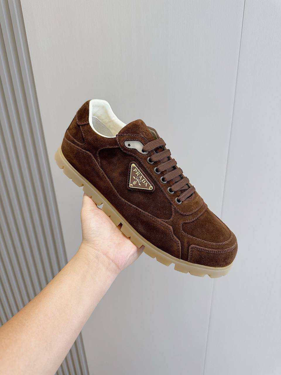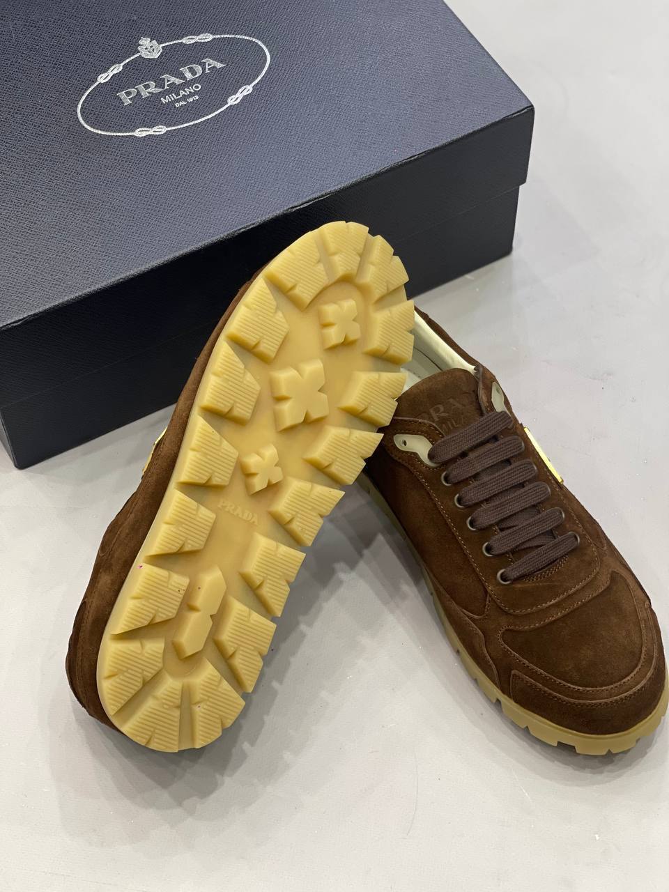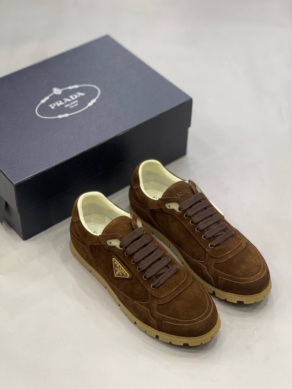 Коричневая мужская кеда Prada с мехом, часть эксклюзивной коллекции для мужчин с чувством стиля и роскоши.