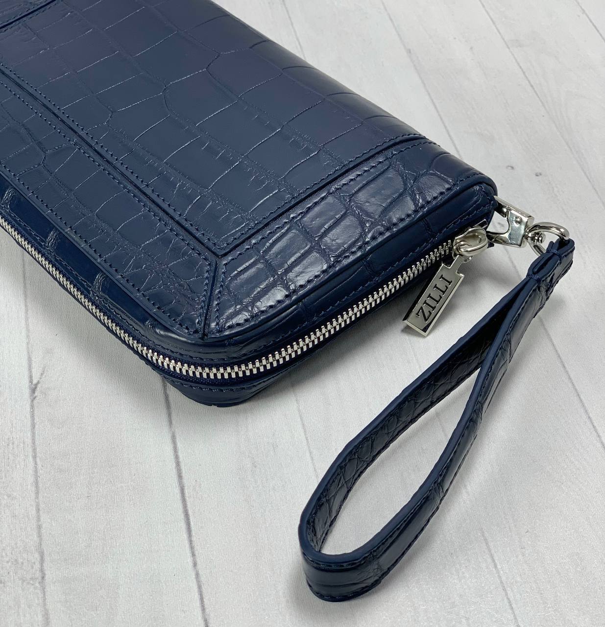 Мужской клатч Zilli из кожи крокодила синий - шикарный аксессуар для стильного мужчины, часть нашей эксклюзивной коллекции премиальной одежды.