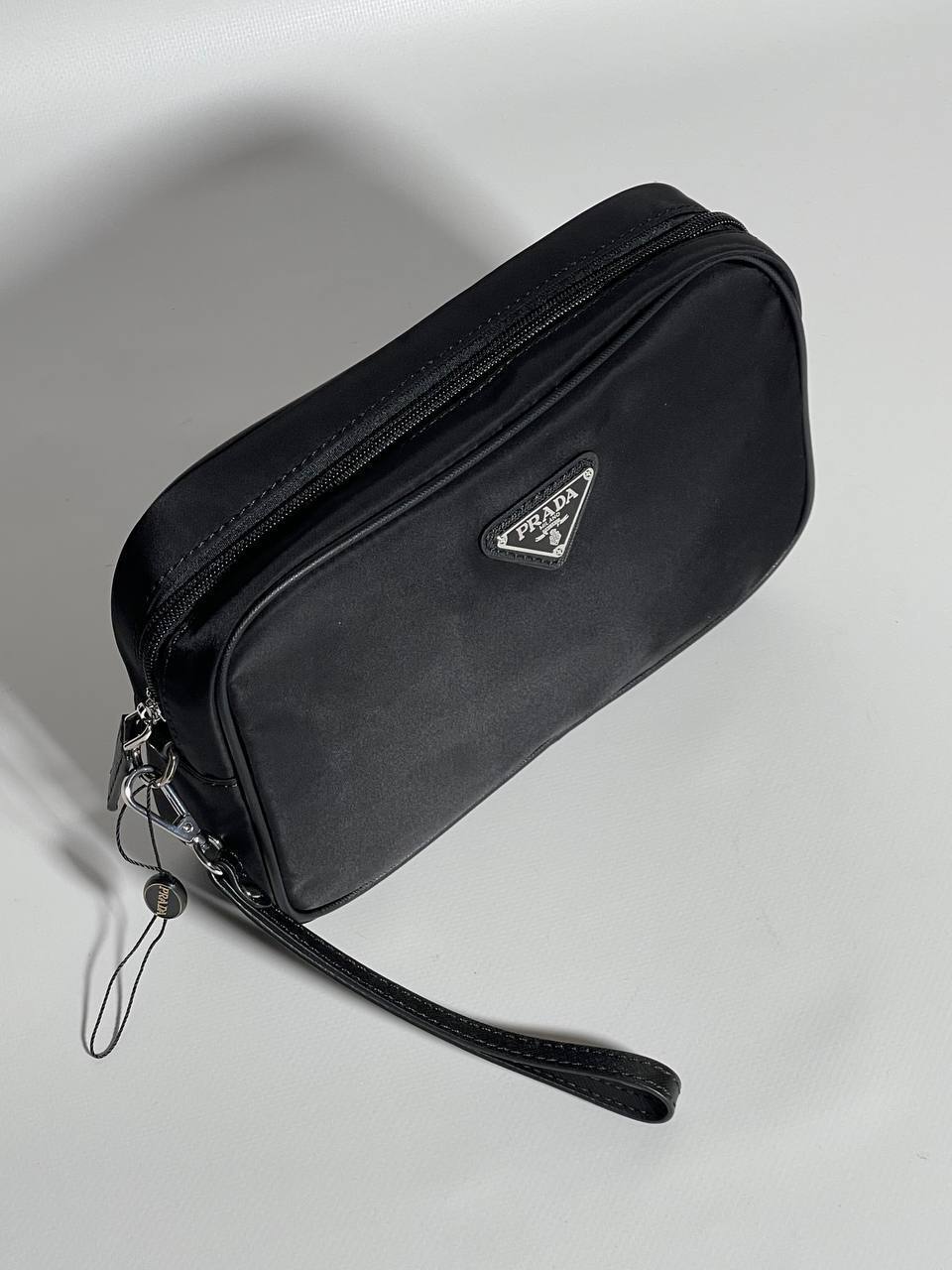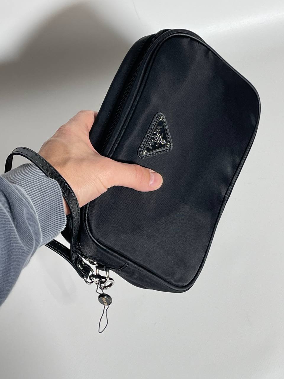 Элегантный мужской Клатч Prada в черном цвете - идеальный выбор для стильного и модного мужчины, который может примерить его прямо у себя дома.