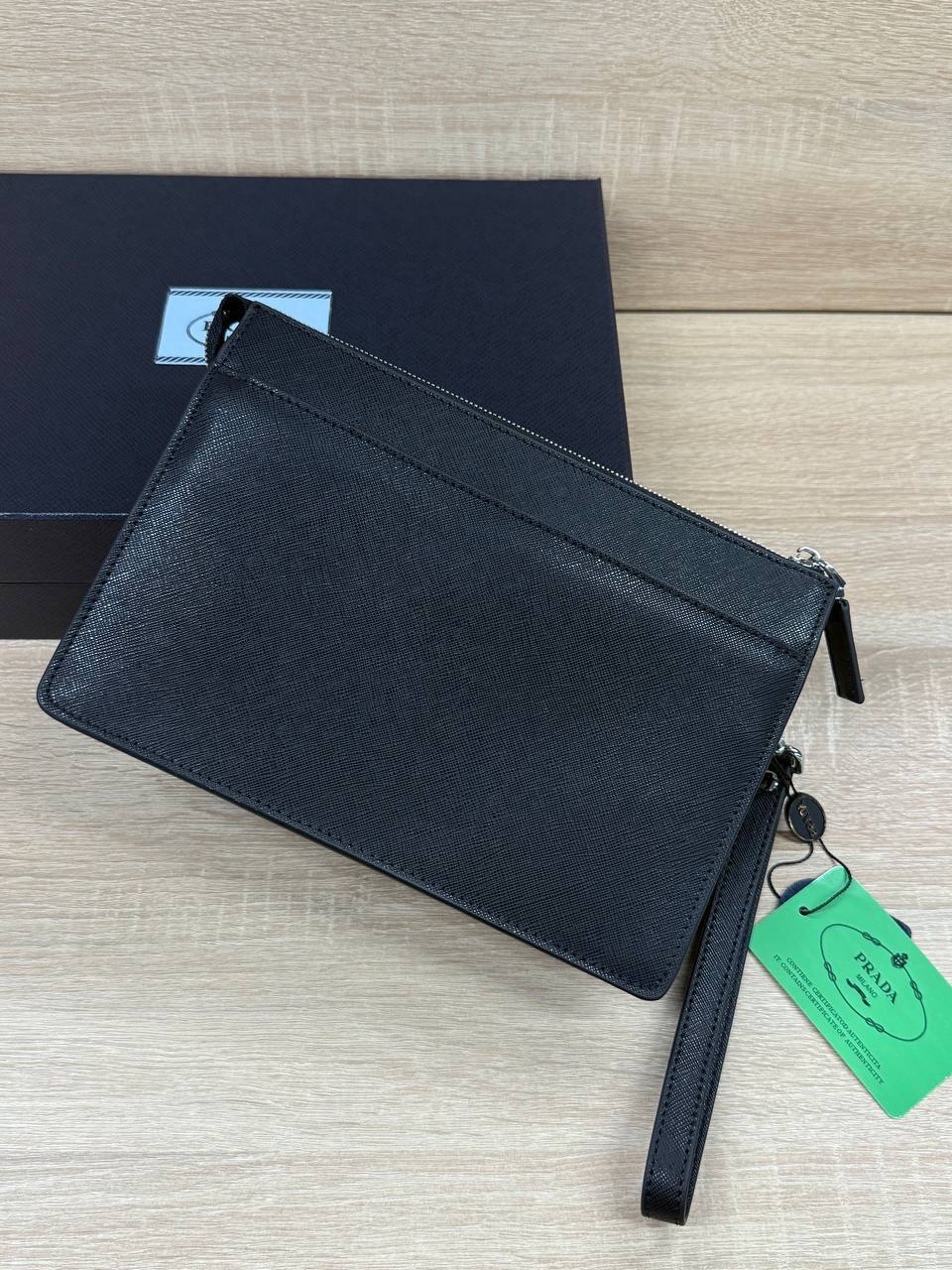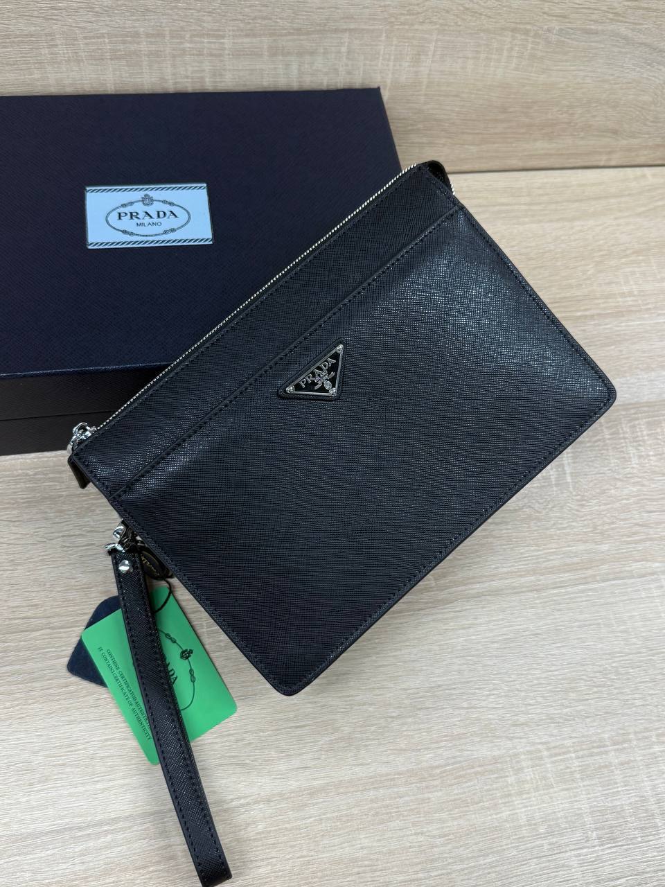 Элегантное решение для мужчины с чувством стиля - черный Клатч Prada, размер 25х17х5 см