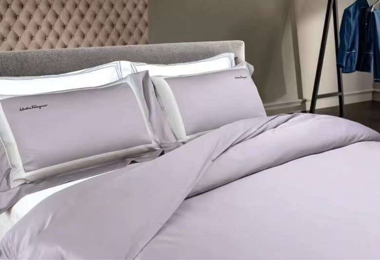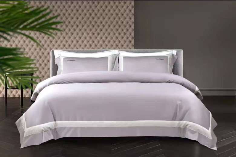 Почувствуй роскошь с Salvatore Ferragamo Серый комплект постельного белья для дома. Высококачественный хлопок, элегантный серый цвет и безупречный стиль. Погрузись в комфорт с лёгким возвратом!