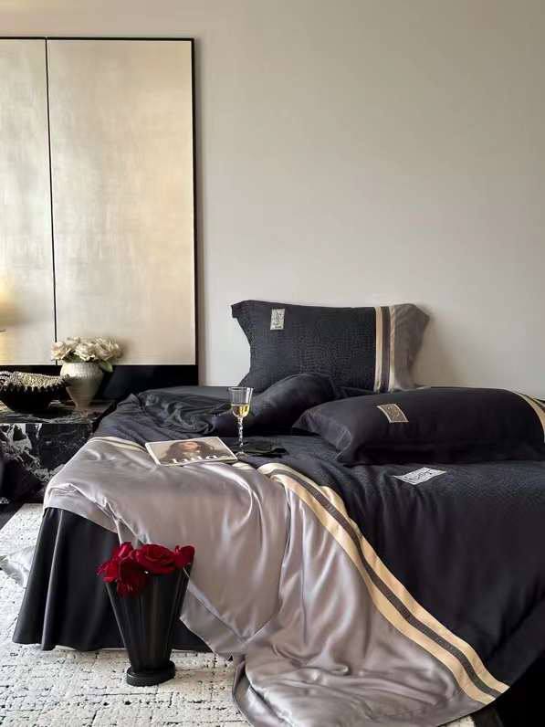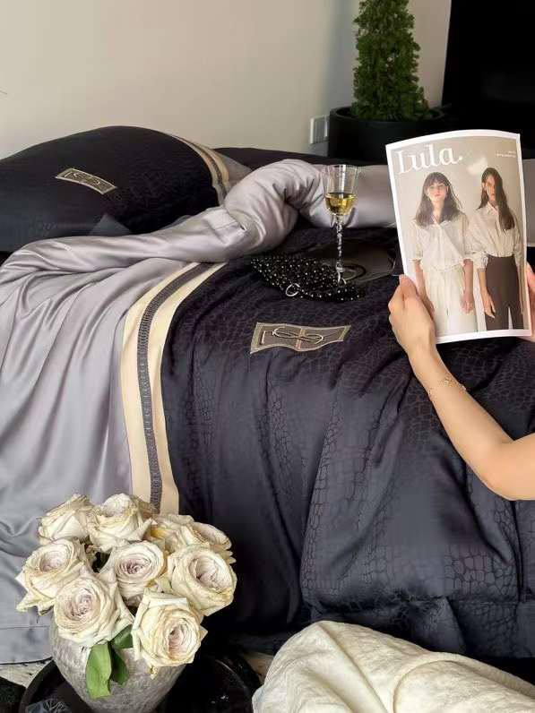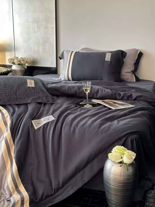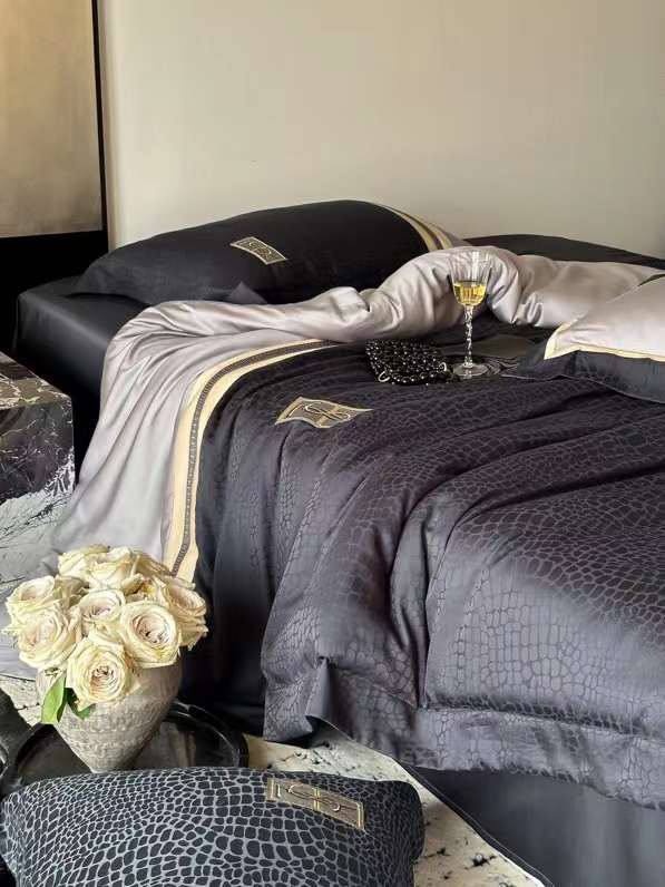 Погрузитесь в мир роскоши с комплектом постельного белья Yves Saint Laurent. Изысканный шелк, принт "под крокодил", золотая вышивка – воплощение безупречного люкса для вашего дома.