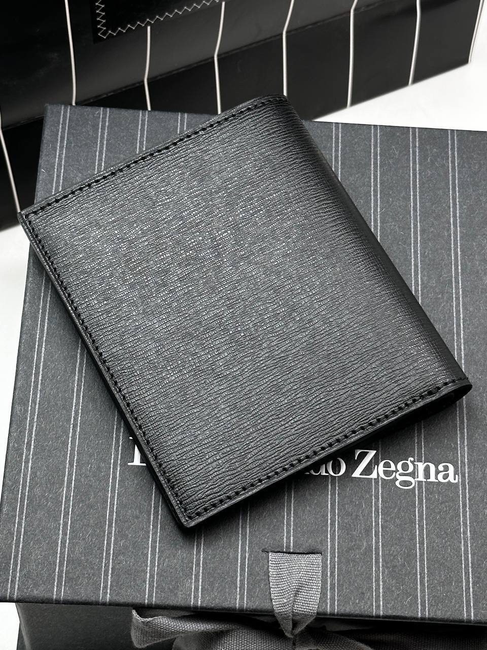 Для мужчин с стильным вкусом - черный мужской кошелек Zegna, размер 11х9,5х1 см, идеальный аксессуар для любителей элегантной одежды и премиум-стиля
