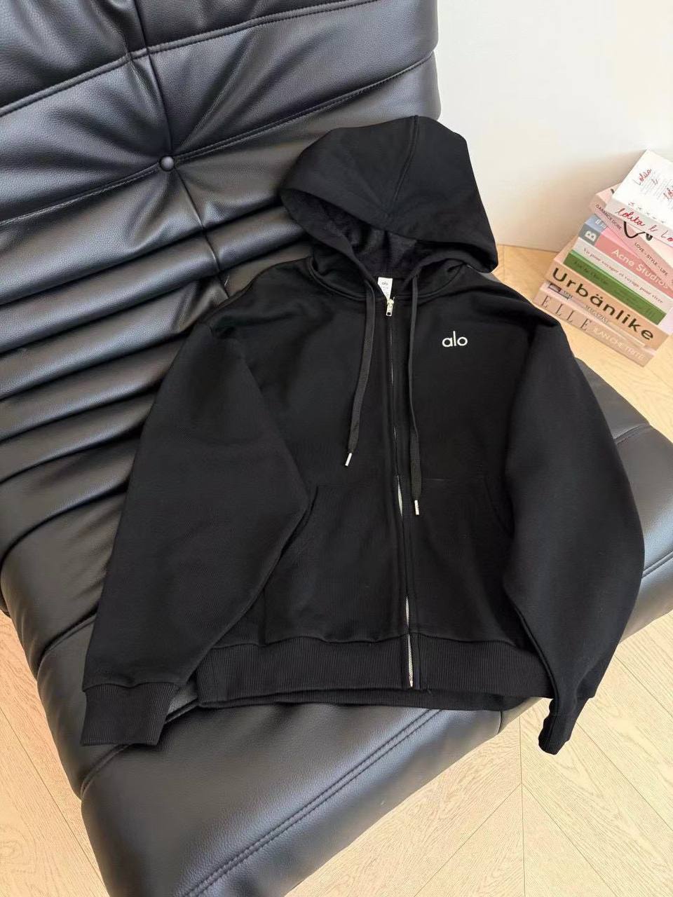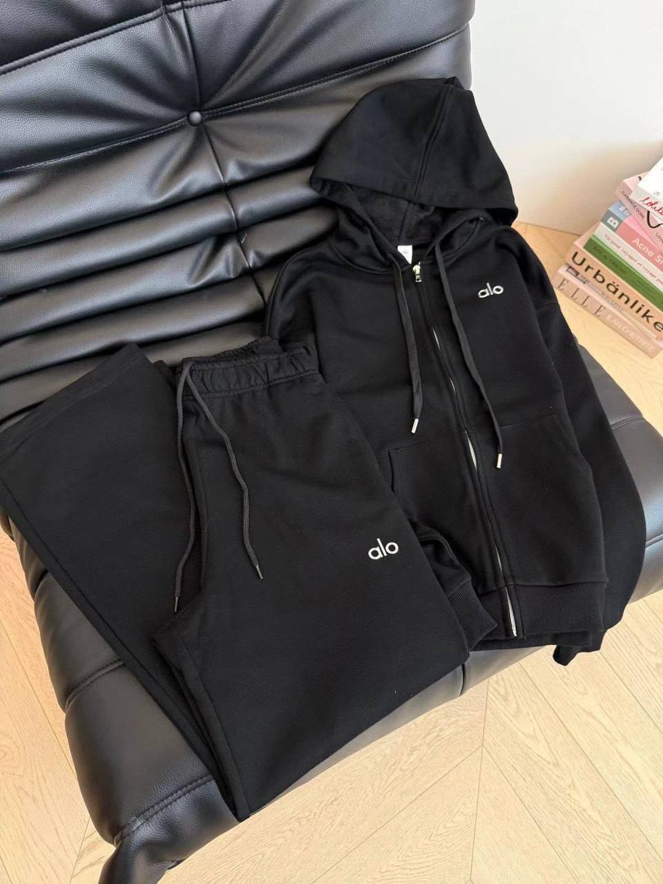 Подчеркните свой стиль с Женским чёрным костюмом Alo! Добавьте нотку классики моды в свою повседневность. Этот стильный чёрный худи Alo – идеальный выбор для активного образа жизни и уверенности в себе.