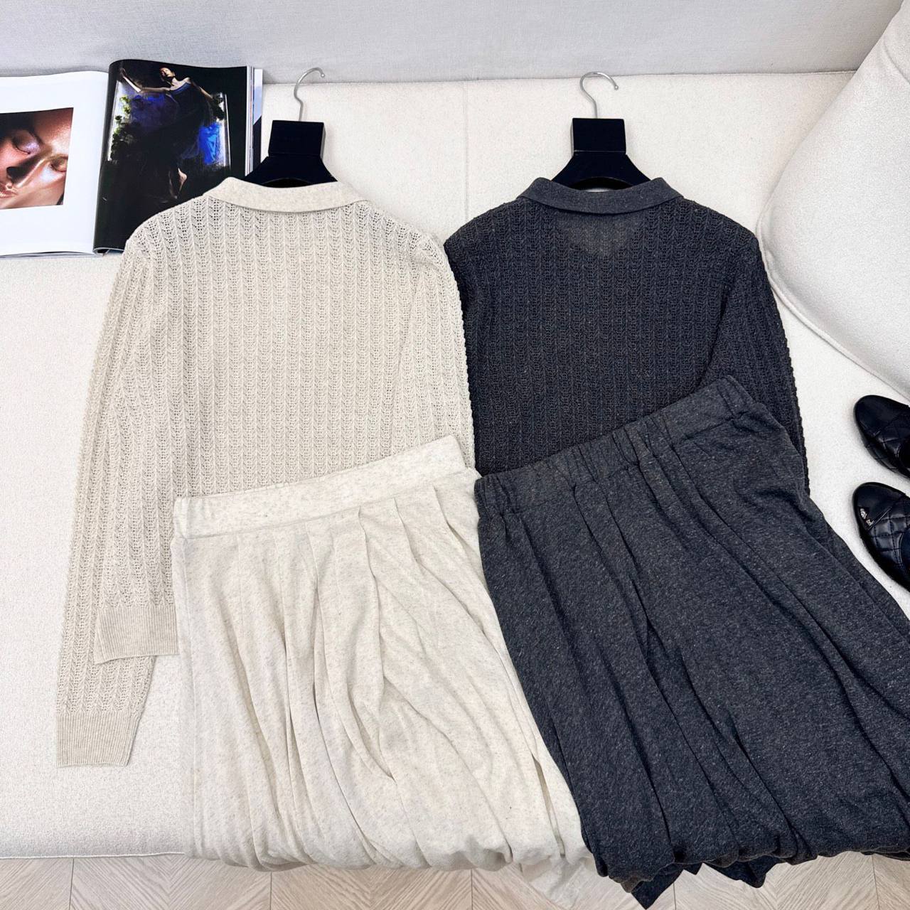 Brunello Cucinelli: Женский светло-серый костюм – воплощение элегантности и безупречной эстетики. Мягкий кашемир, объемный силуэт и воротник-стойка создают идеальный женственный образ.
