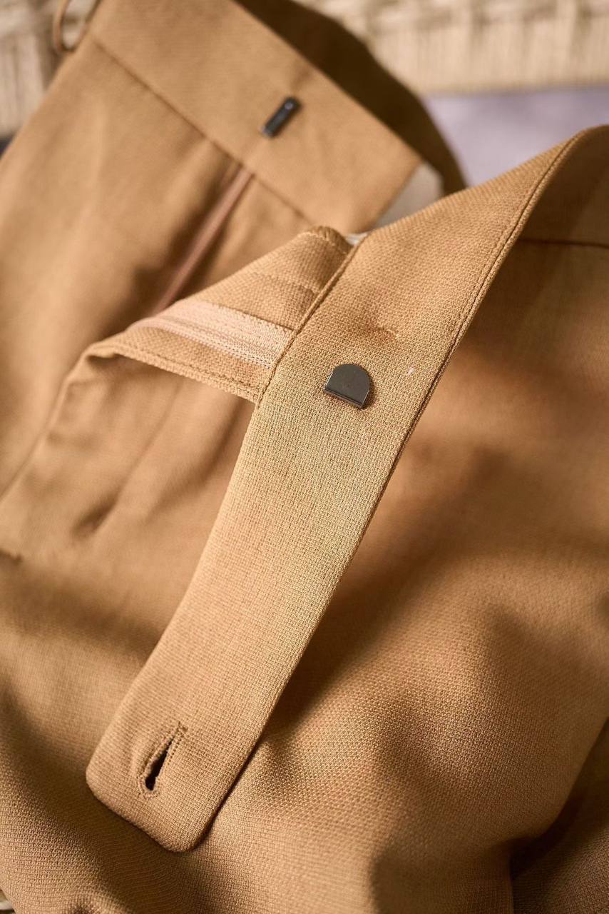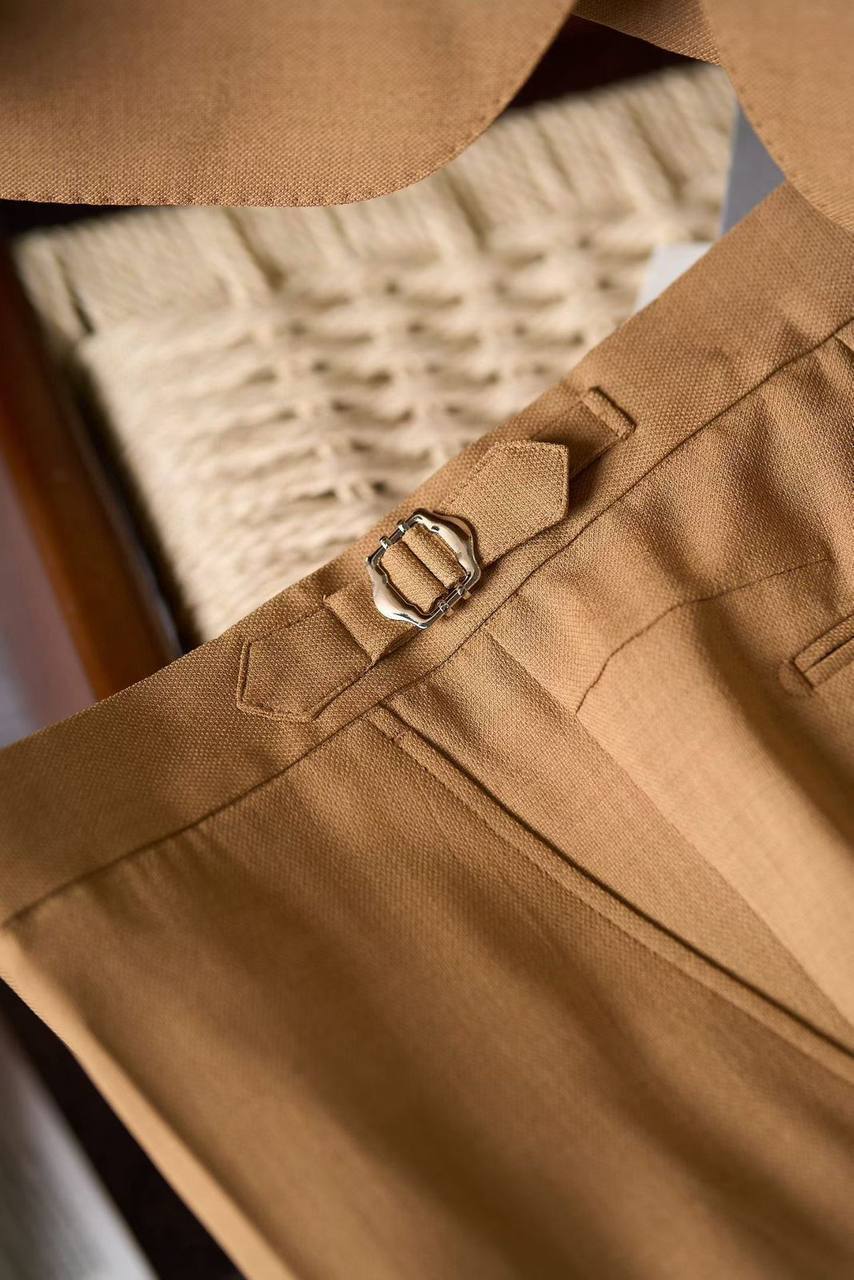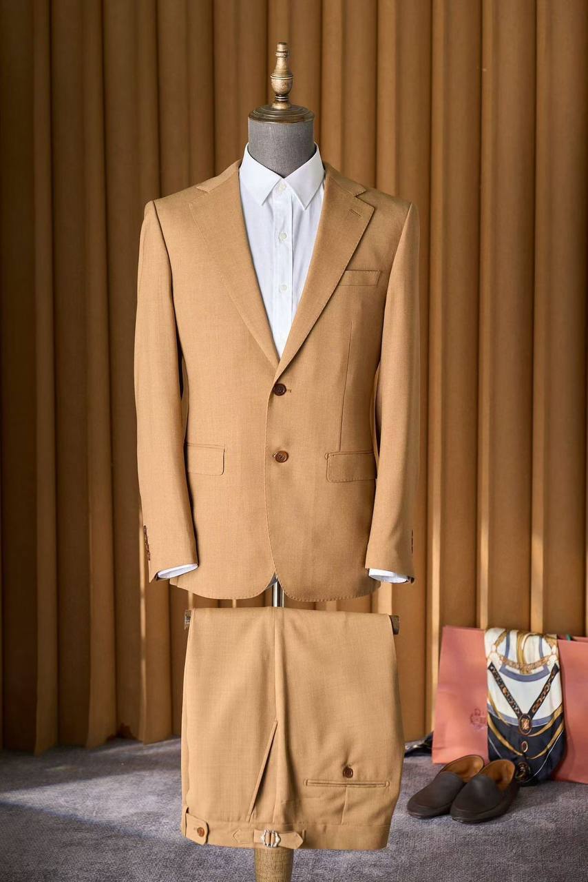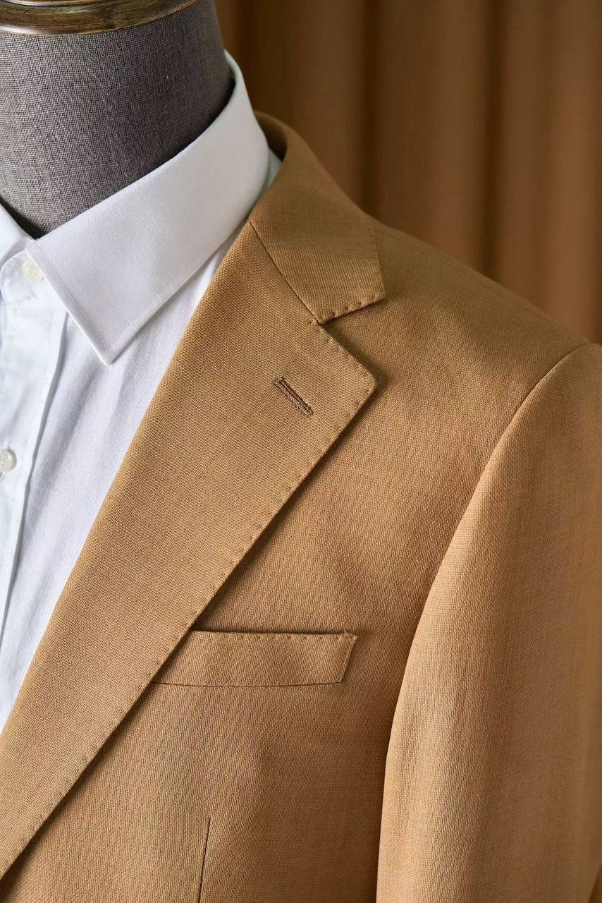 Мужской светло коричневый костюм из премиальной ткани с легким блеском. Высокое качество и безупречный крой для тех, кто ценит стиль и комфорт. Создайте элегантный образ!