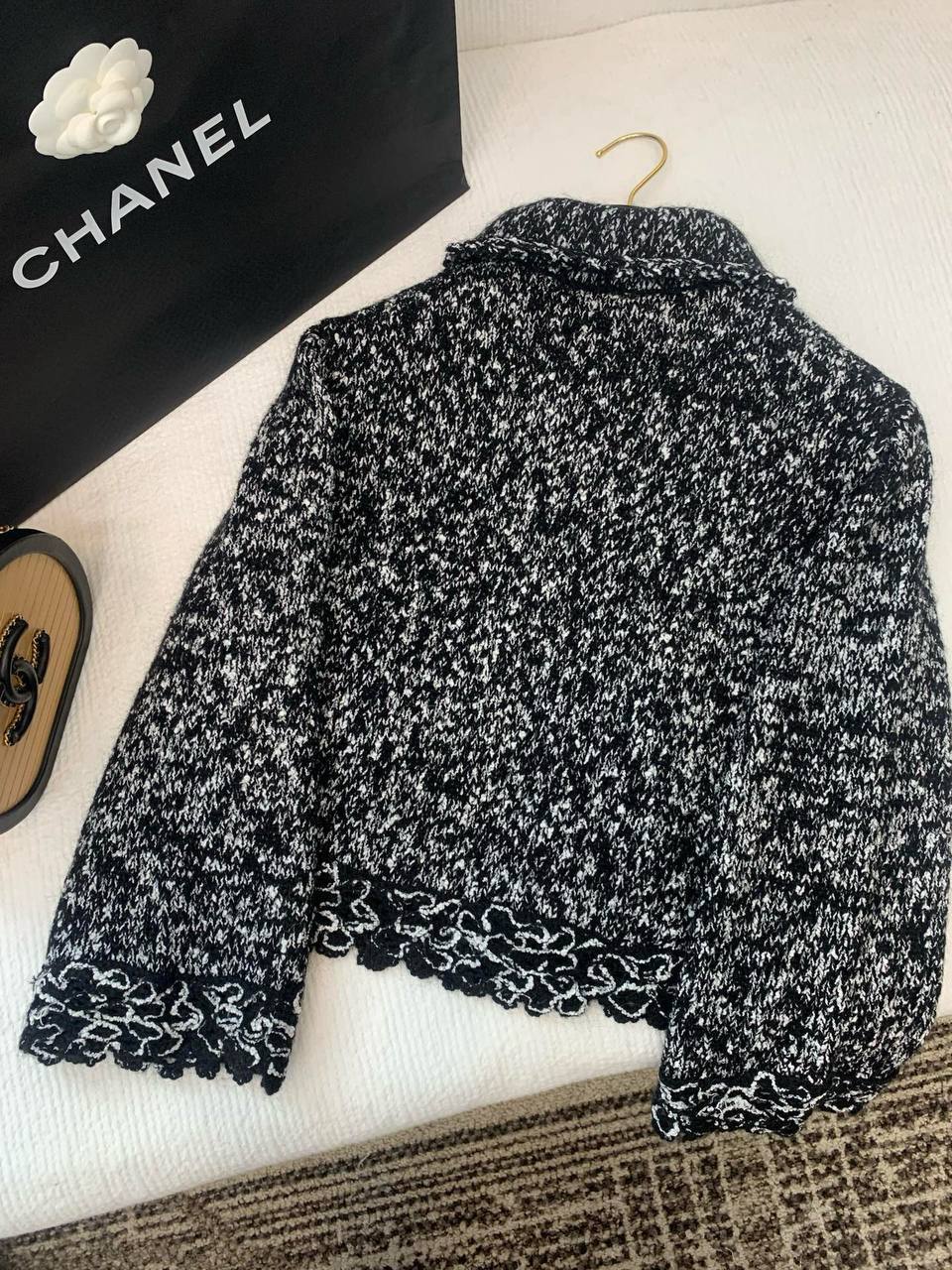 Ощутите роскошь CHANEL Женский Чёрно-белый костюм! Итальянская коллекция премиальной одежды. Мягкий кашемир, элегантный V-образный вырез, идеальный выбор для стильного образа.